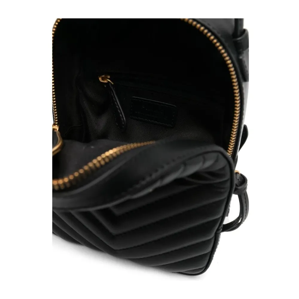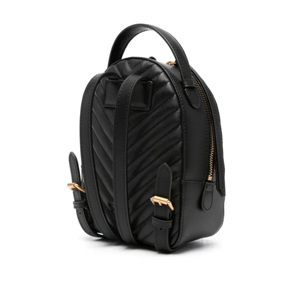 PINKO Rugzak van kalfsleer met matelassé chevron stiksels en de kenmerkende Love Birds-gesp. Een compacte, veelzijdige rugzak ontworpen voor dagelijks gebruik met zowel een handvat aan de bovenkant als verstelbare schouderbanden. Belangrijkste kenmerken: Zwart | Kalfsleer | Tweeweg ritssluiting | Enkel handvat aan de bovenkant | Twee verstelbare schouderbanden | Hoofdvak | Interne zak met ritssluiting | Volledige voering | Beschermende stofzak inbegrepen | Interne logo patch | Matelassé chevron stiksels | Kenmerkende Love Birds-gesp | Geborduurd logo aan de achterkant | Gladde nerf afwerking | Afmetingen & pasvorm: Hoogte: 20,0 centimeter | Breedte: 15,0 centimeter | Diepte: 8,0 centimeter | Handvat: 3,0 centimeter | Band: 80,0 centimeter | Samenstelling & verzorging: Kalfsleer