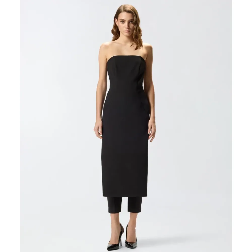 PINKO Scartaregalo Jumpsuit — een mouwloze, slanke jumpsuit die een voorpand met rok-effect combineert met een getailleerd, gestructureerd silhouet voor een verzorgde dagelijkse en avondlook. Belangrijkste kenmerken: Zwart | Zoals te zien op de foto | Polyester | Zachte, vloeiende drapering | Gestructureerde uitstraling | Stretch voor bewegingsvrijheid | Ritssluiting aan de achterkant | Grosgrain-elastische opening aan de achterkant | Volledig gevoerd | Mouwloos | Voorpand met rok-effect | Cut-out detail aan de achterkant | Subtiel baleineffect | Afmetingen & pasvorm: Slanke pasvorm | Samenstelling & onderhoud: Buitenkant: Polyester 70% Viscose 23% Elastane 7% | Voering: Acetaat 67% Polyester 33%