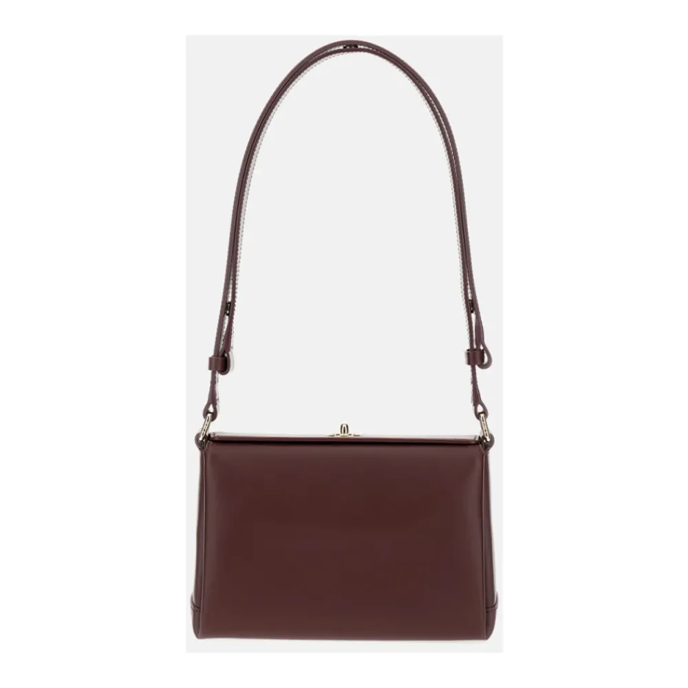 De Plan C Small Shoulder Bag is een compacte schoudertas van kalfsleer met een klep en een draaisluiting. Hij is ontworpen voor dagelijks gebruik en georganiseerde opslag in een verfijnd silhouet. Belangrijkste kenmerken: Bordeaux | Kalfsleer | Verstelbare schouderriem | Verdeeld hoofdcompartiment | Binnenvak met rits | Binneninzetvakken | Logo-patch aan de binnenkant | Draaisluiting | Beschermende metalen voetjes | Klep | Gladde korreltextuur | Logoprint op de voorkant | Goudkleurige hardware | Afmetingen en pasvorm: B 23 cm | H 17 cm | D 10 cm | Schouderriem: 69 – 92 cm | Samenstelling en onderhoud: 99% kalfsleer | 1% metaal