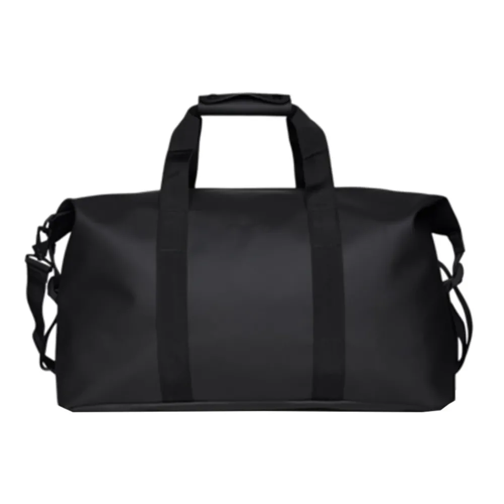 De Rains Hilo Weekend Bag W3 14200 Zwart is de perfecte tas voor wie stijl en functionaliteit wil combineren tijdens een weekendje weg of een korte trip. Met zijn strakke, minimalistische ontwerp en diepzwarte kleur is deze tas niet alleen tijdloos, maar ook veelzijdig en geschikt voor elke gelegenheid. Gemaakt van waterdicht PU-materiaal met gelaste naden biedt de tas uitstekende bescherming tegen regen en vocht, zodat je bagage altijd droog blijft. Het ruime hoofdvak biedt voldoende plek voor kleding, toiletspullen en andere benodigdheden, terwijl de robuuste rits ervoor zorgt dat alles veilig opgeborgen zit. De stevige handgrepen maken hem makkelijk draagbaar, terwijl de verstelbare en afneembare schouderband extra comfort biedt, zodat je de tas zowel in de hand als over de schouder kunt dragen. Of je nu een citytrip plant, een zakelijke overnachting hebt of gewoon een stijlvolle en praktische reistas zoekt, de Rains Hilo Weekend Bag is een betrouwbare en modieuze keuze die perfect aansluit bij de moderne reiziger.