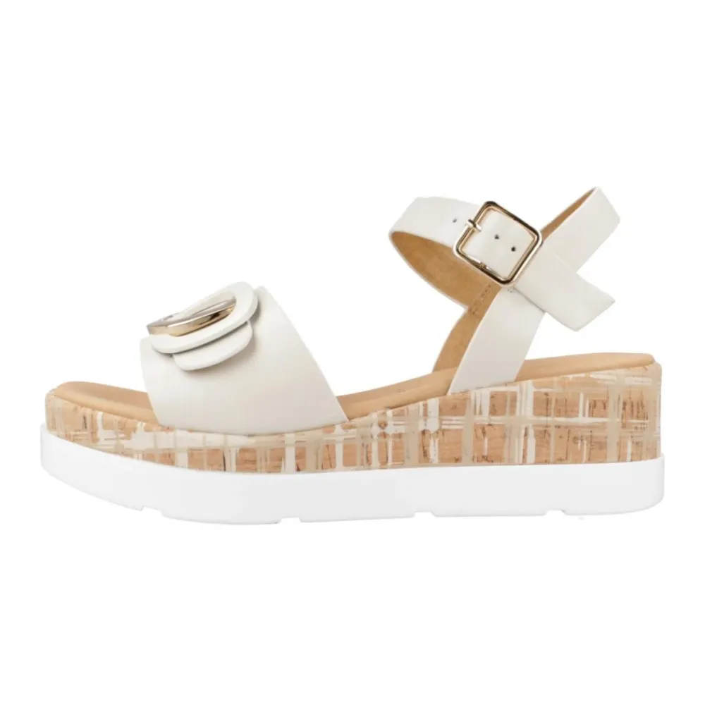 De REPO Platform Sandaal combineert een casual-chique stijl met een opvallend platform met kurkeffect en een decoratieve gesp. De verstelbare gespsluiting zorgt voor een veilige, comfortabele pasvorm voor dagelijks gebruik. Belangrijkste kenmerken: Beige | Leer | Verstelbare gespsluiting | Platform met kurkeffect | Decoratieve gesp | Open teen | Sleehak | Afmetingen en pasvorm: Valt normaal | Verstelbare gesp zorgt voor een persoonlijke pasvorm | Samenstelling en verzorging: Bovenkant: Leer | Voering: Synthetisch | Zool: Rubber