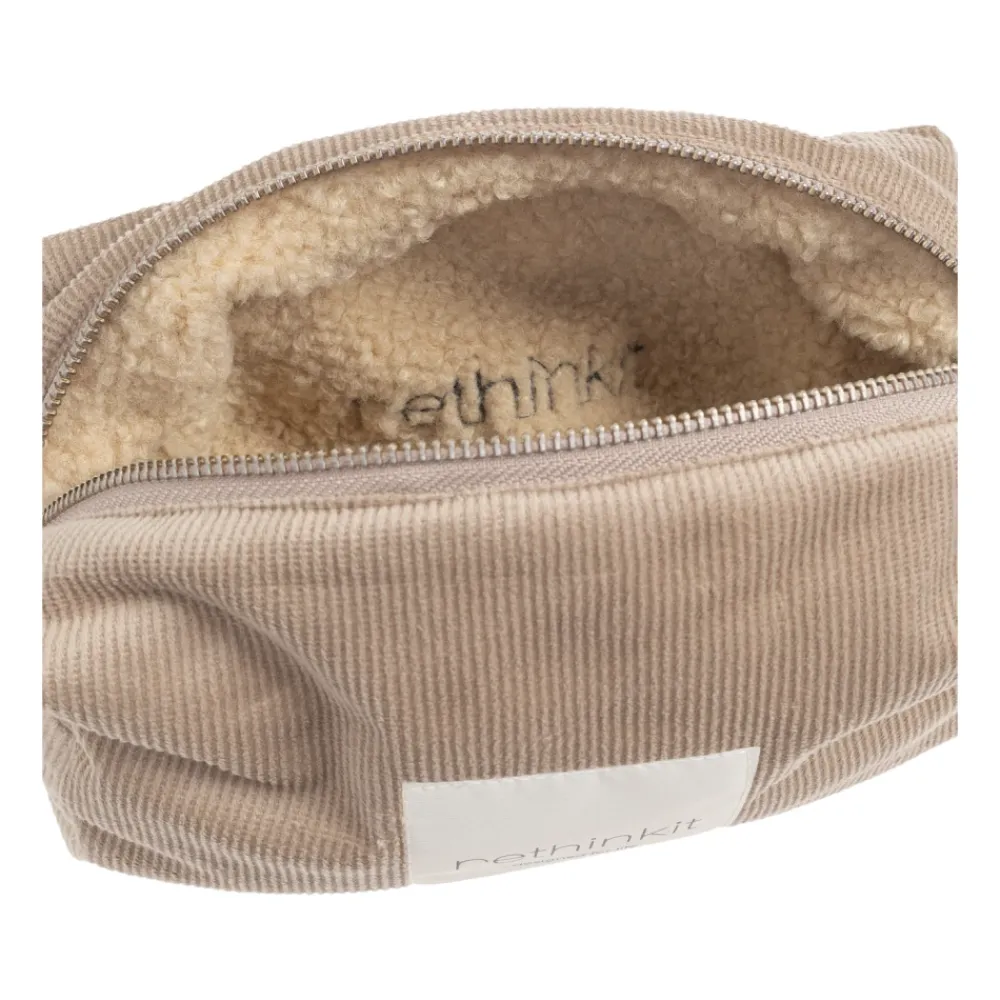 De dubbelzijdige cosmetische tas met logo van Rethinkit Studios combineert twee contrasterende texturen in een compacte etui, ideaal voor het opbergen van schoonheidsproducten en voor op reis. Het dubbelzijdige ontwerp biedt tactiele variatie en houdt tegelijkertijd cosmetica georganiseerd. Belangrijkste kenmerken: Beige | Polyester | Dubbelzijdig ontwerp (twee stoffen kanten) | Ribfluweeltextuur aan één kant | Teddy (pluche) stof aan de andere kant | Contrasterende logopatch met “RETHINKIT” en motto | Rechthoekige vorm met subtiel afgeronde zijkanten | Afmetingen: Hoogte: 13 cm | Breedte: 21 cm | Samenstelling en onderhoud: Polyester