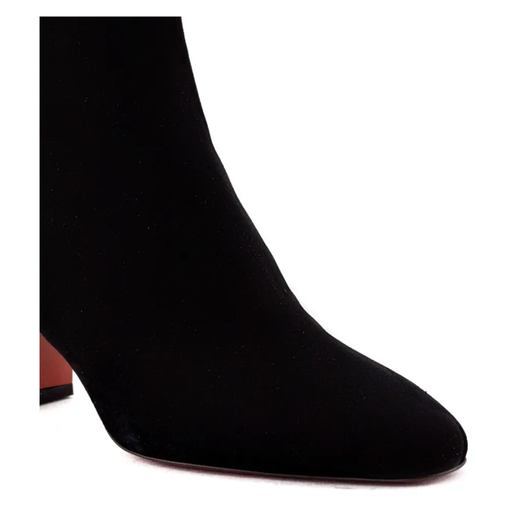 Verhoog je stijl met deze Roberto Festa Muny enkellaarsjes in zwart suède. Met een afgeronde, licht toelopende neus, zijrits en een hakhoogte van 7 cm. Compleet met een leren zool met logo.