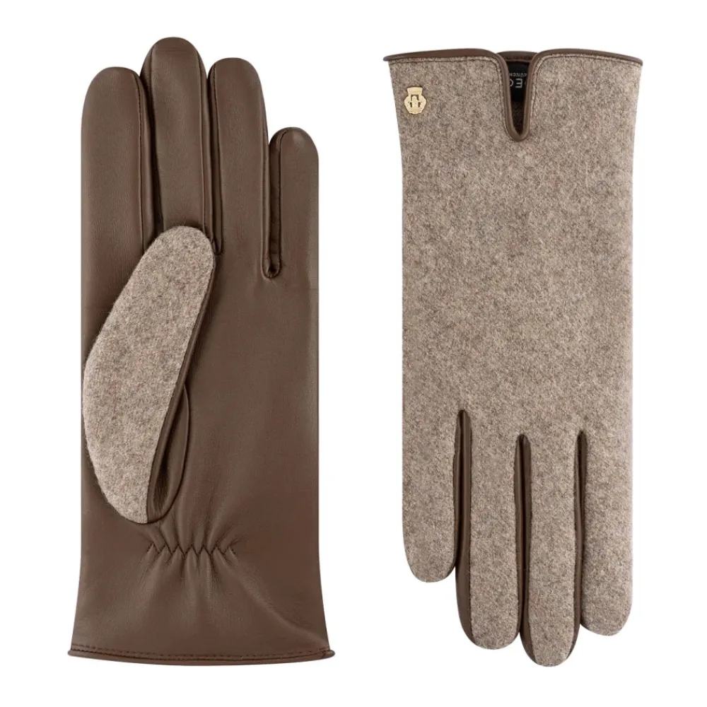 Roeckl handschoenen combineren elegant design met fijn vakmanschap, waarbij Haarschaf-Nappaleder en loden worden gecombineerd voor een onderscheidende look en een zachte wollen voering die betrouwbare warmte en bescherming tegen vocht biedt. Belangrijkste kenmerken: Bruin | Hellbraun | Haarschaf-Nappaleder | Wollen voering voor warmte | Beschermt tegen kou en vocht | Zachte wollen voering | Zorgvuldige linker naadconstructie | Nappa leer en loden combinatie | Discreet ROECKL-wappen embleem | Naaddetail aan de linkerzijde | Samenstelling & verzorging: Haarschaf-Nappaleder | Loden | Wollfutter (wollen voering)