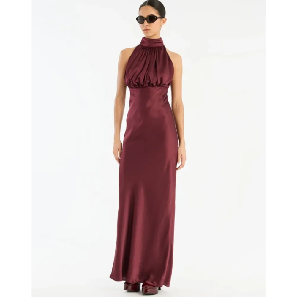 DAMES ROTATE Birger Christensen Rode Halternek Maxi Jurk