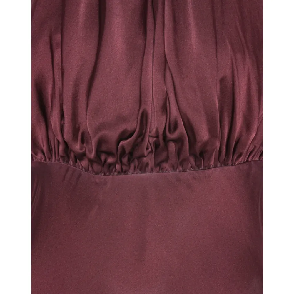 Upgrade je feestlook met deze mouwloze maxi-jurk van ROTATE Birger Christensen. Voorzien van een verzamelde halternek, lange rok, blouson top en een getailleerde taille met een hoge halslijn. Deze jurk is afgewerkt met een haak-en-oogsluiting aan de achterkant en een verborgen rits in de taille. Gemaakt van 100% zijde en geproduceerd in China. Model draagt maat 34.