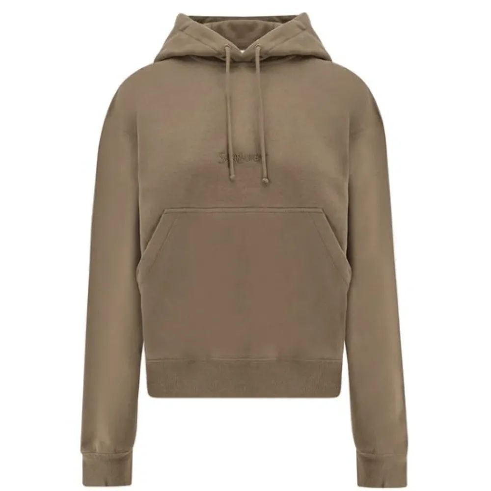 DAMES Saint Laurent Khaki Geborduurde Hoodie met Kangoeroezak