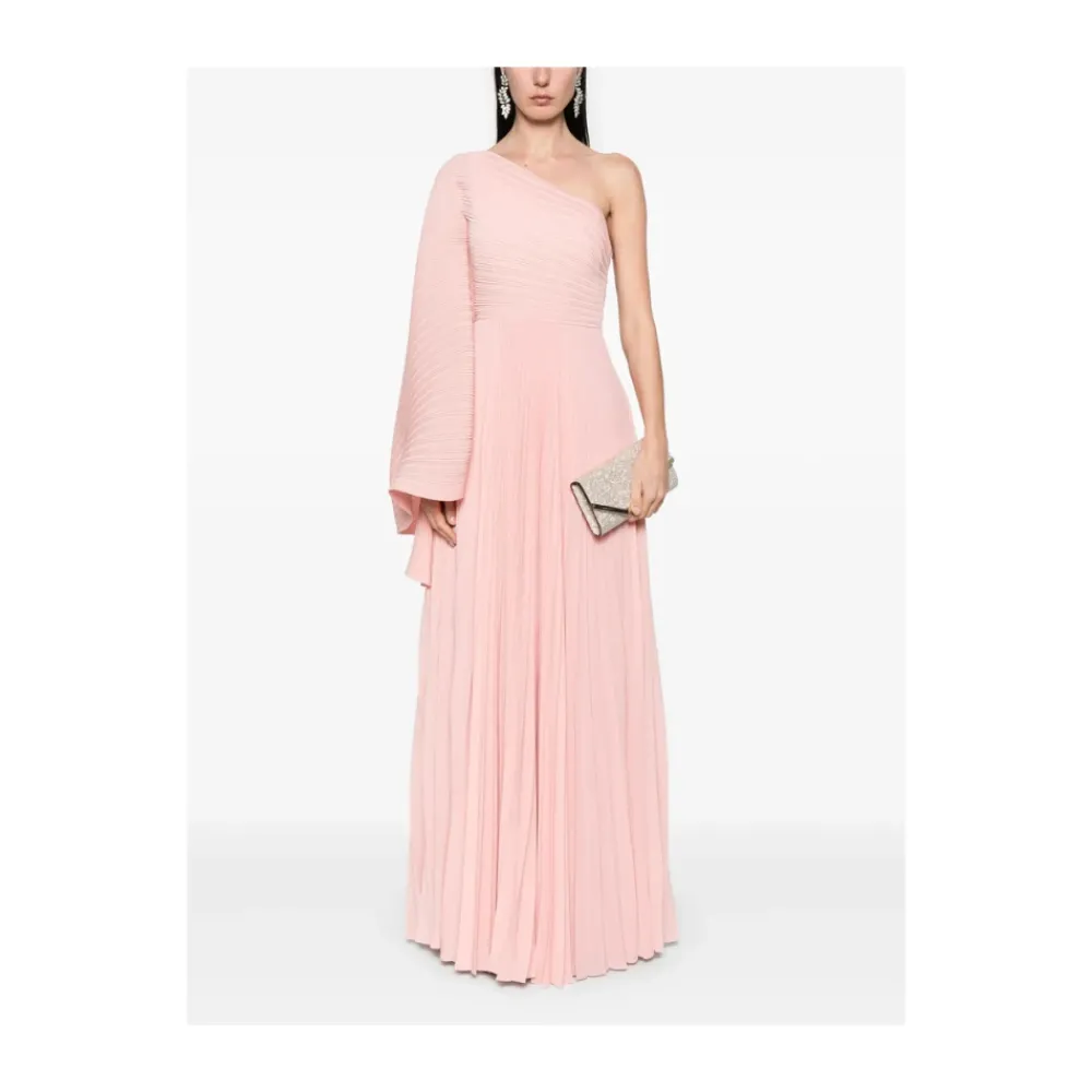 Upgrade je feestlook met deze Solace London jurk in bubblegum roze. Met verborgen zijritssluiting, asymmetrische mouwen en plissé-effect is deze jurk een must-have voor elke modebewuste vrouw.