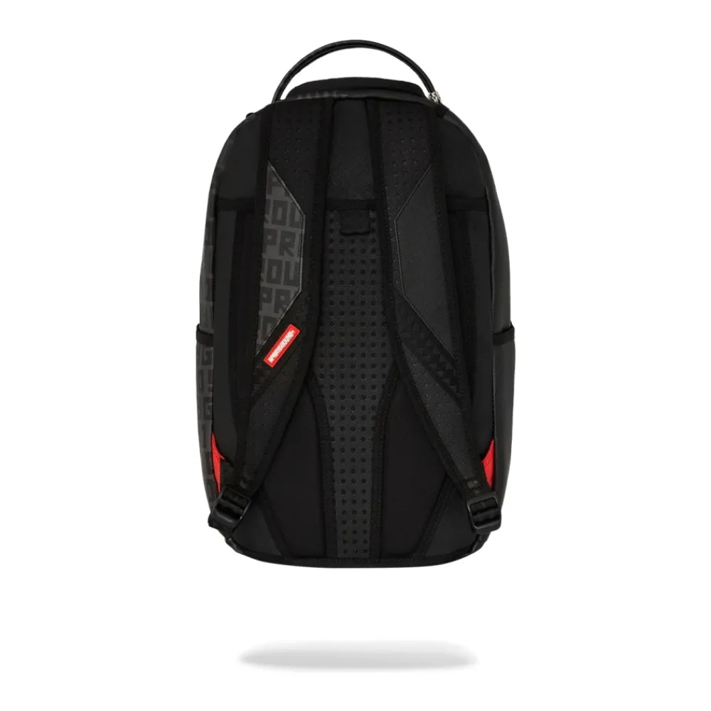 DLXV = 100% ECOPELLE Voorvak met rits Zijzakken Verborgen ritszak Apart vak voor zonnebril met fluweel Ergonomische achtervulling in net Verstelbare banden voor aangepaste afmetingen Ritsen met metalen hardware Badge “Sprayground Authentic” Schuifbare achterkant kan aan handbagage worden bevestigd voor handenvrij gebruik Apart vak voor laptop , waterbestendige vegan lederen stof Ongeveer 46x30x15 cm