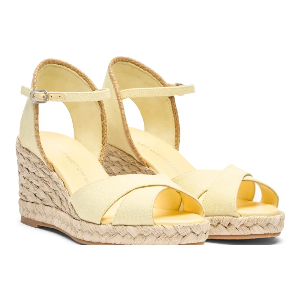 De Stuart Weitzman MIRELA II ESPADRILLE WEDGE combineert stijl en comfort, met een vrouwelijk gekruist vamp detail en een lichtgewicht zool van 60 mm, omwikkeld met jute, voor een chique look voor warm weer. Belangrijkste kenmerken: Lemon Chiffon | Natural | Yellow | Jute | Gekruist vamp detail | Jute piping accent |