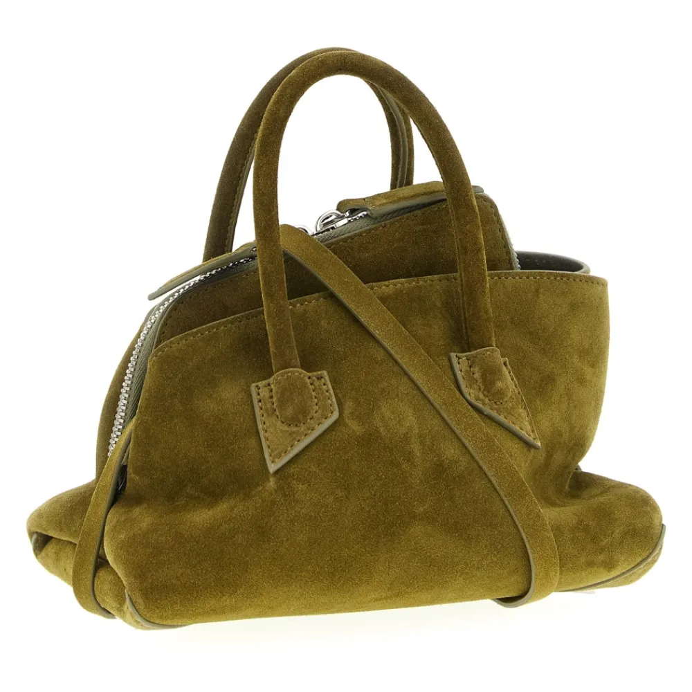 De Attico La Passeggiata Mini is een compacte mini handtas van suède, gekenmerkt door het logo in reliëf en een gestructureerd silhouet. Ontworpen voor gebruik van dag tot nacht, biedt het een veilige plek voor essentials en voegt het een sculpturale touch toe aan outfits. Belangrijkste kenmerken: Groen | Suède | Gestructureerd silhouet | Stabiele basis | Ritssluiting aan de bovenkant | Dubbel vast handvat | Afneembare schouderriem | Zijzakken | Stevige basis met metalen voetjes | Logo in reliëf aan de voorkant | Geometrische, asymmetrische vorm | Buisvormige handgrepen aan de bovenkant | Afmetingen & pasvorm: One size | Samenstelling & verzorging: 100% kalfsleer (Bos Taurus)