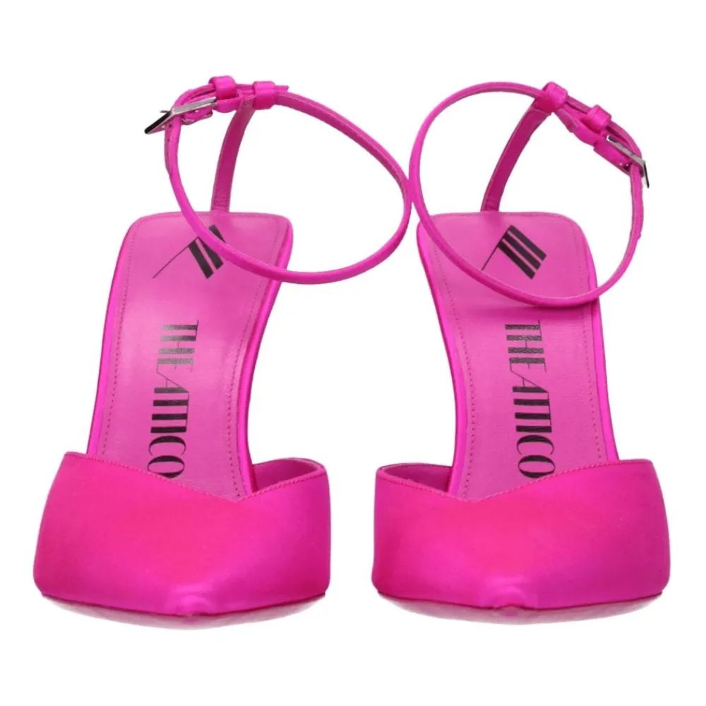 De Attico Satijnen Stiletto Hak Sandalen combineren een strak satijnen bovenwerk met een stilettohak van 10,5 cm voor verfijnde avond- en gelegenheidskleding. Ontworpen door The Attico, combineren ze een silhouet met spitse neus met een veilige gespsluiting voor een elegante look. Belangrijkste kenmerken: Fuchsia | Satijn | Gespsluiting | Leren zool | Puntige neus | Hoge stilettohak | Satijnen afwerking | Afmetingen & pasvorm: Hakhoogte: 10,5 cm | Samenstelling & verzorging: Satijn | Leer