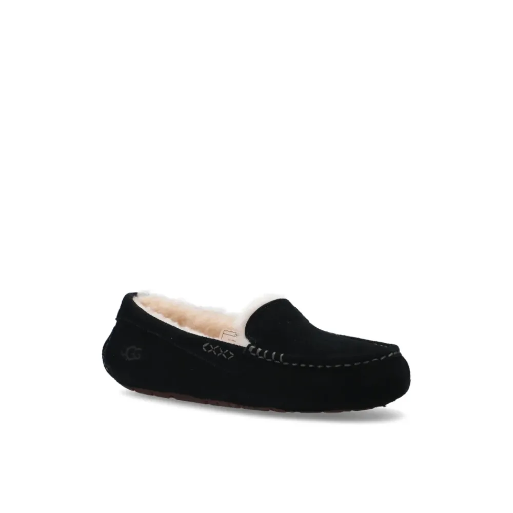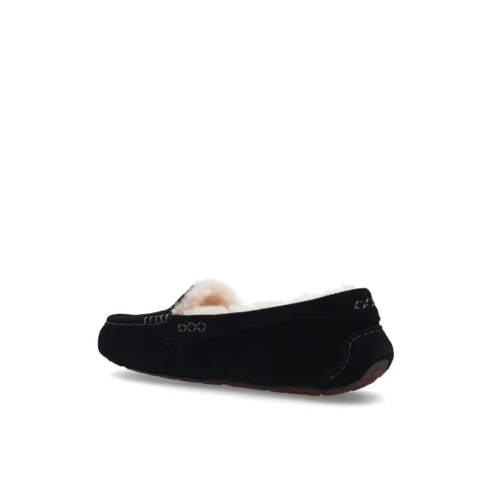 Zwarte W Ansley mocassins van UGG. Gemaakt van suède met een crèmekleurige schapenvacht voering, deze stijl is compleet met stikdetails, een zwart logoplaatje en een donkerbruine rubberen zool.