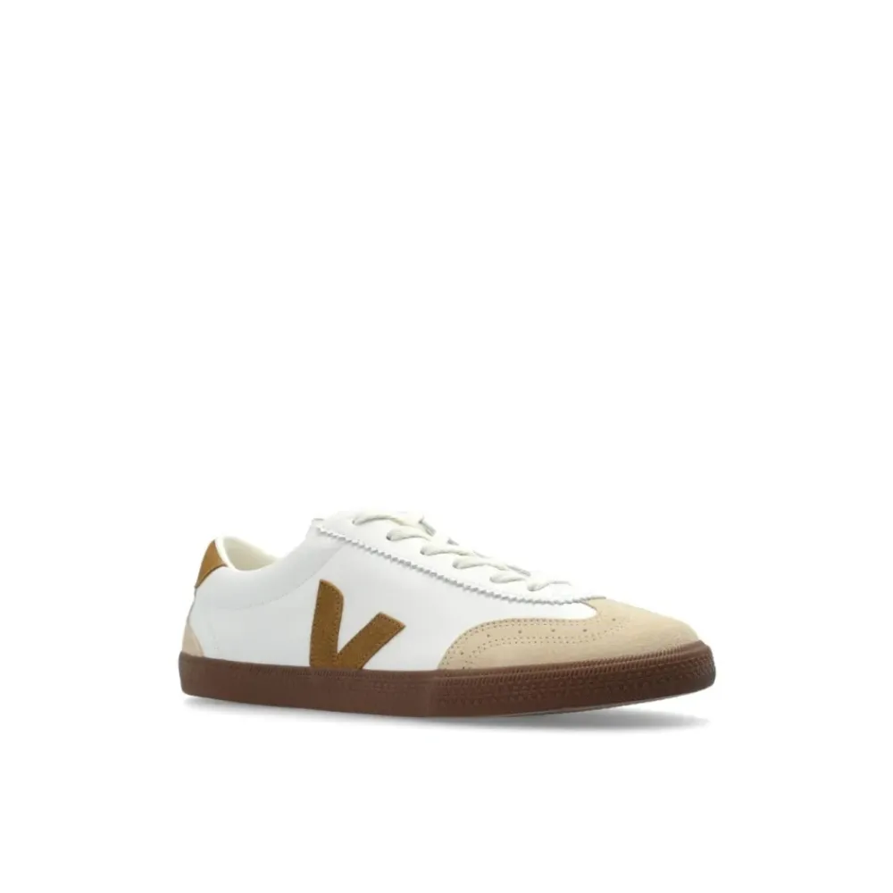 De Veja Volley O.T. Leather Sneakers combineren een retro low-top silhouet met een bovenwerk van leer en suède voor dagelijks gebruik. Het ontwerp combineert klassieke, op volleybal geïnspireerde lijnen met een gripvaste rubberen buitenzool voor betrouwbare grip en comfort. Belangrijkste kenmerken: Wit | gelooid leer en suède | Gripvaste rubberen buitenzool | Flexibele zool | Ademende textielvoering | Platte katoenen veters | Textielvoering | Gewatteerde binnenzool | Low-top silhouet | Contrasterende suède panelen | Iconisch V-logo op de zijkanten | Ronde neus | Verstevigde hielstuk | Gewatteerde enkelkraag | Afmetingen & pasvorm: Zoolhoogte: 2-3 cm | Normale pasvorm | Samenstelling & verzorging: Bovenwerk: gelooid leer | Overlays: Suède | Voering: polyester | Binnenzool: Bio‑EVA, rubber uit het Amazonegebied, katoen | Buitenzool: rubber uit het Amazonegebied, minerale silica en synthetisch rubber | Veters: katoen
