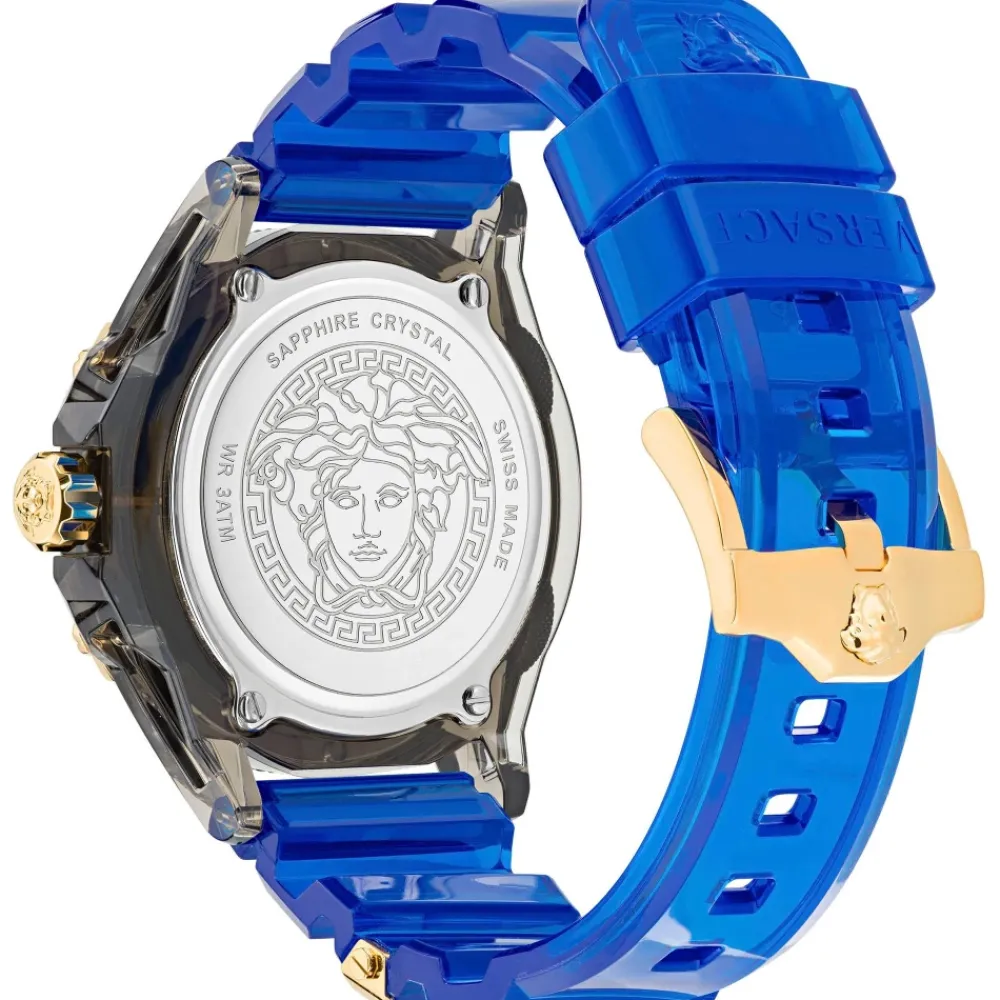 Upgrade je stijl met dit prachtige Versace horloge voor vrouwen. Met een quartz uurwerk, analoog display en blauwe wijzerplaat met lichtgevende indexen, is dit in Zwitserland gemaakte horloge zowel stijlvol als functioneel. De antracietkleurige kast en blauwe band vullen elkaar perfect aan, terwijl het saffierglas een vleugje luxe toevoegt. Met een kastdiameter van 43 mm en speciale kenmerken zoals lichtgevende wijzers en een schroefbare roestvrijstalen achterkant, is dit horloge een must-have accessoire. Sluit het veilig met de gespsluiting.