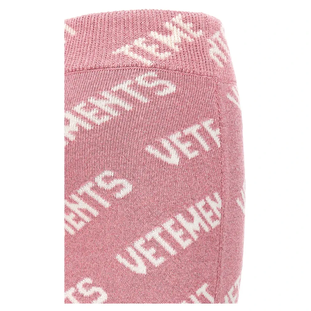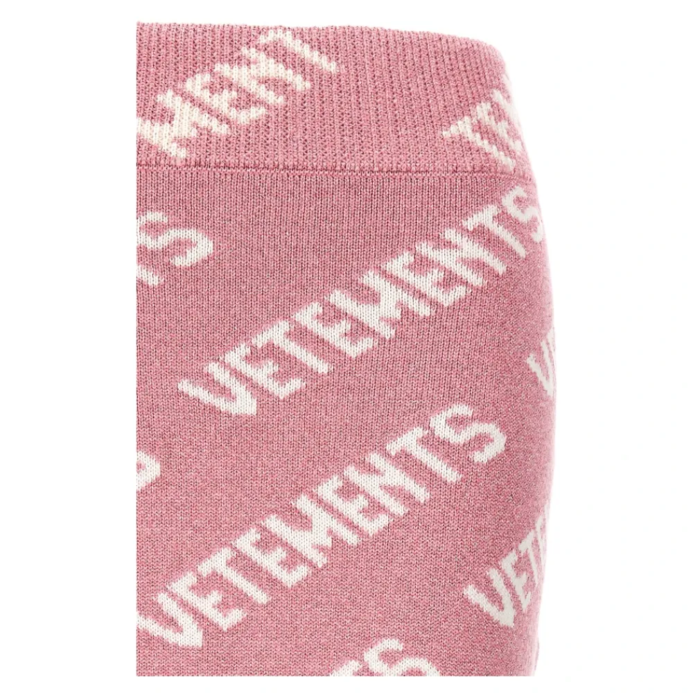 De Vetements Iconic Lurex Monogram Rok is een korte jacquard rok die opvalt door zijn glinsterende lurex afwerking en all-over logo patroon. Het combineert een comfortabele elastische tailleband met een gerafelde zoom voor een eigentijdse, gemakkelijk te dragen look. Belangrijkste kenmerken: Roze | Lurex viscosemix | Elastische tailleband | All-over jacquard logo patroon | Gerafelde zoom | Korte lengte | Afmetingen & pasvorm: Normale pasvorm | Valt normaal qua maat | Samenstelling & verzorging: 50% viscose | 32% wol | 15% polyester | 3% polyamide