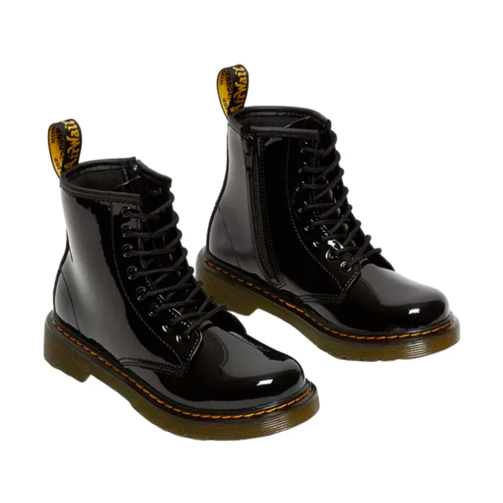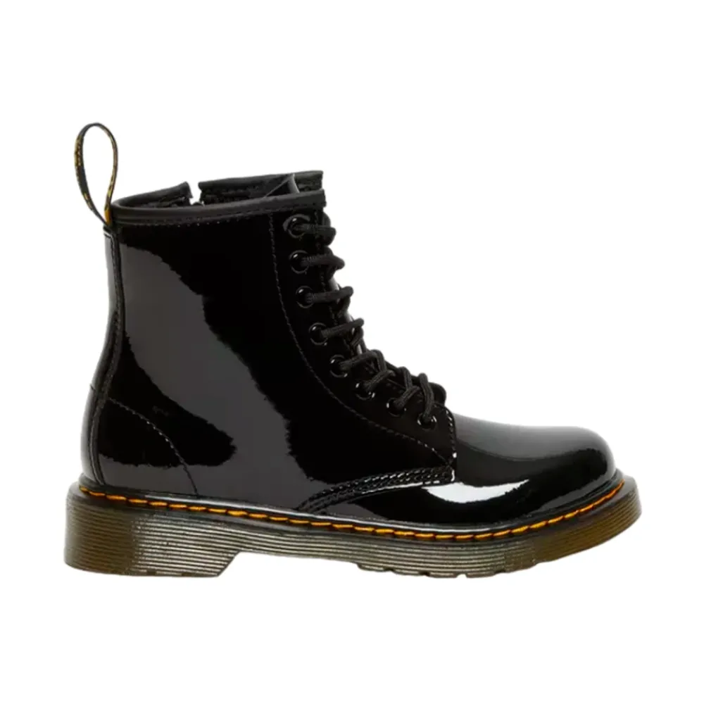 De 1460 Junior Veterlaarsjes van Dr. Martens zijn gemaakt voor groeiende voeten en bieden een strakke glans met hun Patent Lamper-leer. Deze laarzen bieden zowel stijl als comfort, waardoor ze een perfecte keuze zijn voor dagelijks gebruik. Belangrijkste kenmerken: Zwart | Patent Lamper-leer | Flexibele zool | Gesealde zool | Gele stiksels | Gele en zwarte hiellus | Afmetingen en pasvorm: Normale pasvorm |