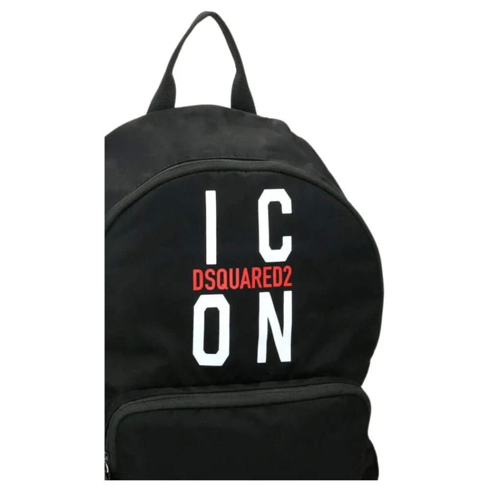 Dsquared2 Rugzak in een nylon constructie met lederen details, ontworpen met een silhouet met ritssluiting en een gedurfde contrasterende rode en witte logo print voor dagelijks gebruik. Belangrijkste kenmerken: Zwart | Nylon | Ritssluiting | Externe zak met ritssluiting | Verstelbare schouderbanden | Lederen details | Contrasterend rood | Witte logo print | Ontwerp met ritssluiting | Intern logo label | Samenstelling & verzorging: 100% nylon | Lederen details