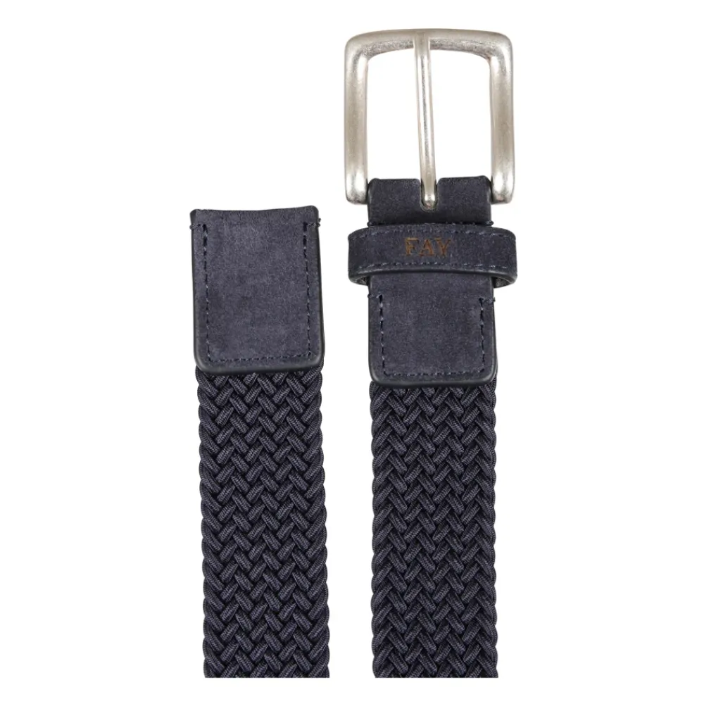 Geef je stijl een boost met deze Fay geweven riem, voorzien van een gespsluiting en logo-embleem. Gemaakt voor veelzijdigheid en duurzaamheid. Belangrijkste kenmerken: Blauw | Viscose | Elastaan | Verstelbaar ontwerp | Gespsluiting | Logo-embleem | Afmetingen en pasvorm: Verstelbare pasvorm | Samenstelling en onderhoud: 60% Viscose | 40% Elastaan | Niet gespecificeerd