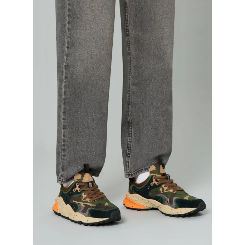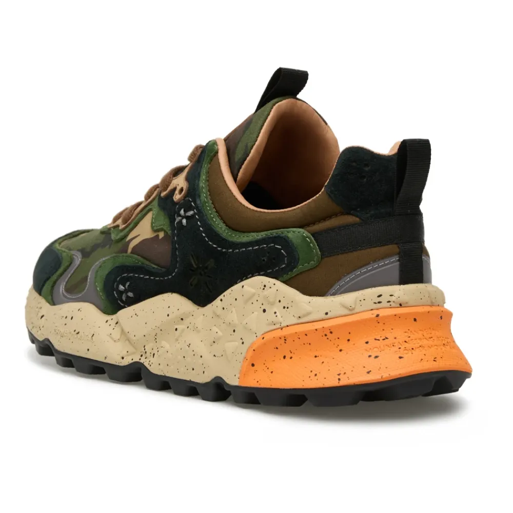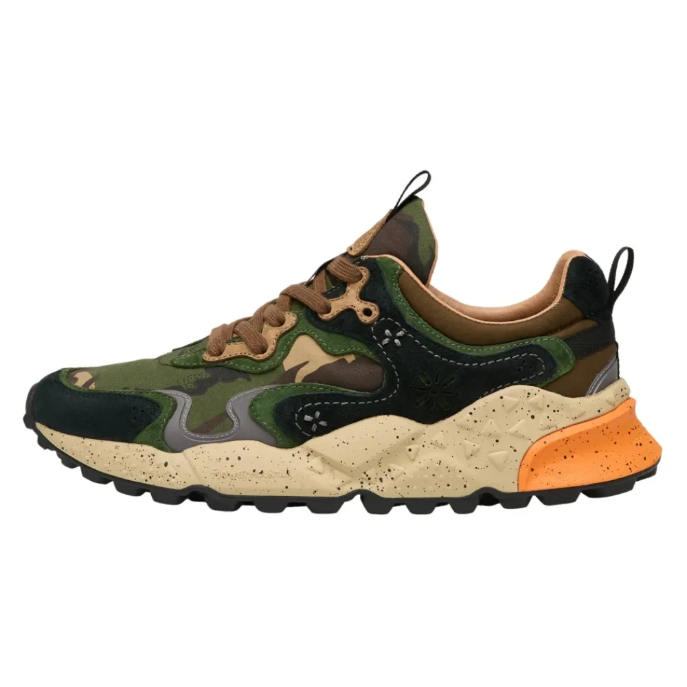 De Flower Mountain Rulis sneaker combineert een bovenwerk van technische stof met suède overlays en een camouflageprint voor een veelzijdige schoen, geschikt voor zowel de stad als outdoor activiteiten. De lichtgewicht rubberen zool en een antibacteriële kurken binnenzool bieden comfort voor de hele dag. Belangrijkste kenmerken: Multicolor | Bruin groen | Technische stof en suède | Natuurlijke antibacteriële kurken binnenzool | Ultralichte rubberen zool | Gegoten rand met ingedrukt profiel voor grip | Sluiting met katoenen veters | Verstevigde veterogen | Bovenwerk van technische stof met camouflageprint | Suède inzetstukken bewerkt met overlappende techniek | Zijwaarts gevormde zool en contrasterend hielstuk | Samenstelling & verzorging: Bovenwerk: technische stof en suède (leer) | Voering: leer en stof | Binnenzool: natuurkurk (antibacterieel) | Buitenzool: rubber