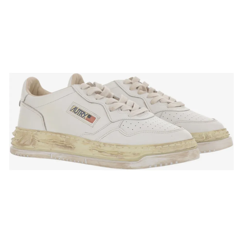 De Autry SUPVINT Low van Autry is een leren sneaker die door Maison Mihara Yasuhiro is herwerkt voor een vintage, sculpturale look. Hij valt op door zijn zool met distressed-effect en de klassieke geperforeerde neus die een verouderde, ingedragen esthetiek geeft, geschikt voor dagelijkse styling. Belangrijkste kenmerken: Wit | Bianco | Leer | Vetersluiting aan de voorkant | Logo details | Ton-sur-ton stiksels | Geperforeerde neus | Zool met distressed effect | Afmetingen & pasvorm: EU 41 | Ietwat smalle pasvorm | Leren binnenzool verhoogd met 2 cm | Samenstelling & verzorging: 100% leer