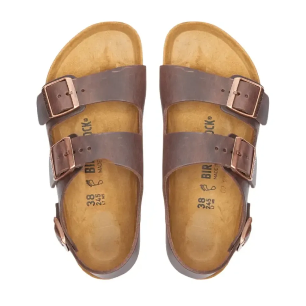 Birkenstock Milano Smalle Pasvorm is een platte sandaal in Bruin | Habana die een minimalistisch silhouet combineert met dagelijks draagcomfort. Productafbeelding is indicatief. Belangrijkste kenmerken: Bruin | Habana | Afmetingen & pasvorm: Smalle pasvorm
