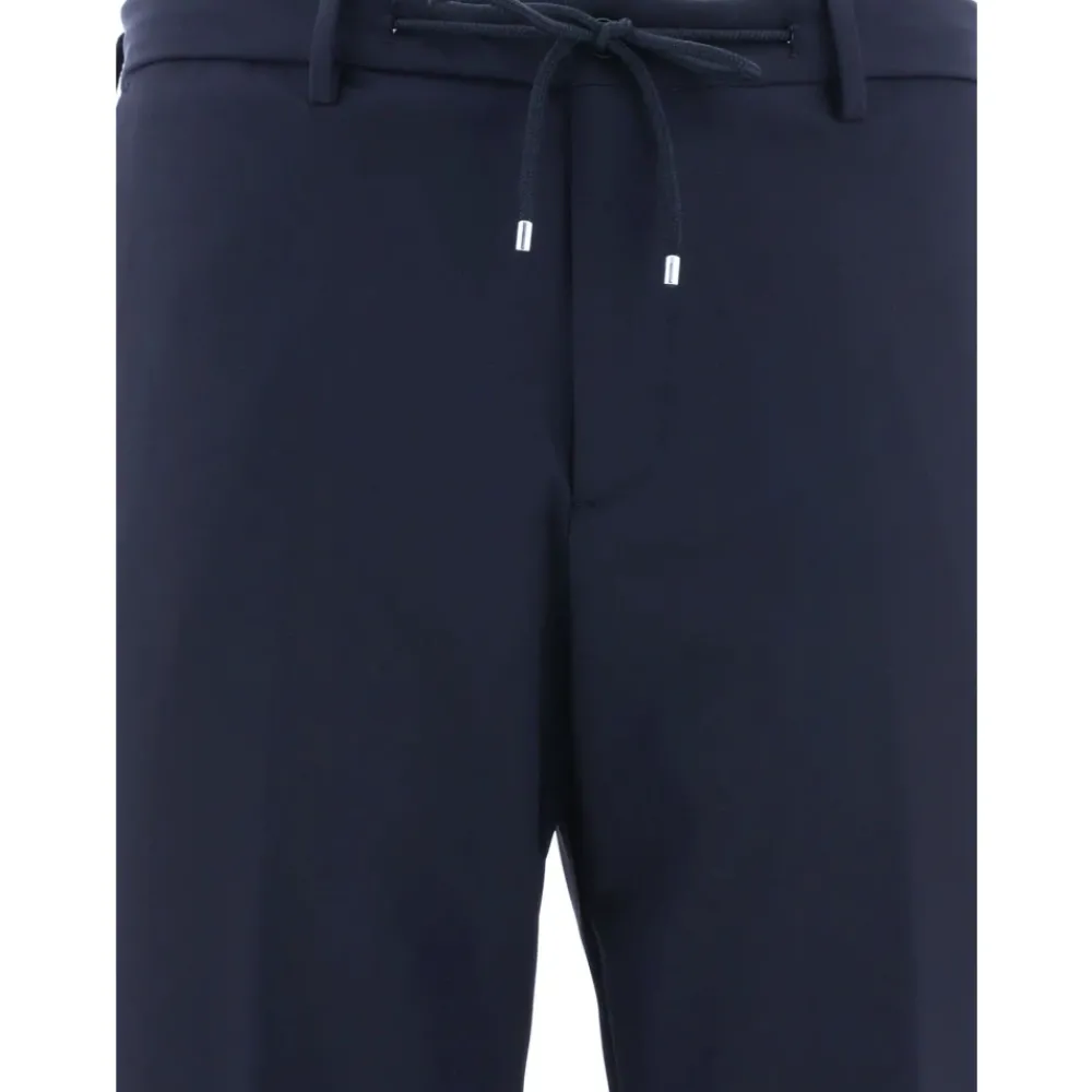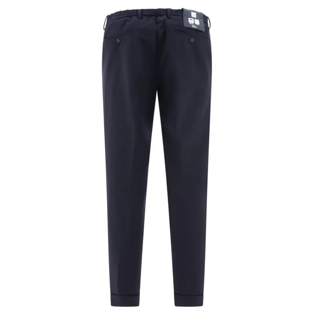 Briglia Montreals broek in blauwe maagdelijke wol, met trekkoordsluiting, voorplooien, knoopsluiting aan de voorkant en ritssluiting, riemlussen, twee zijdelingse paspelzakken, twee achterzakken met paspel en omgeslagen zomen. Slim-fit ontwerp voor mannen.