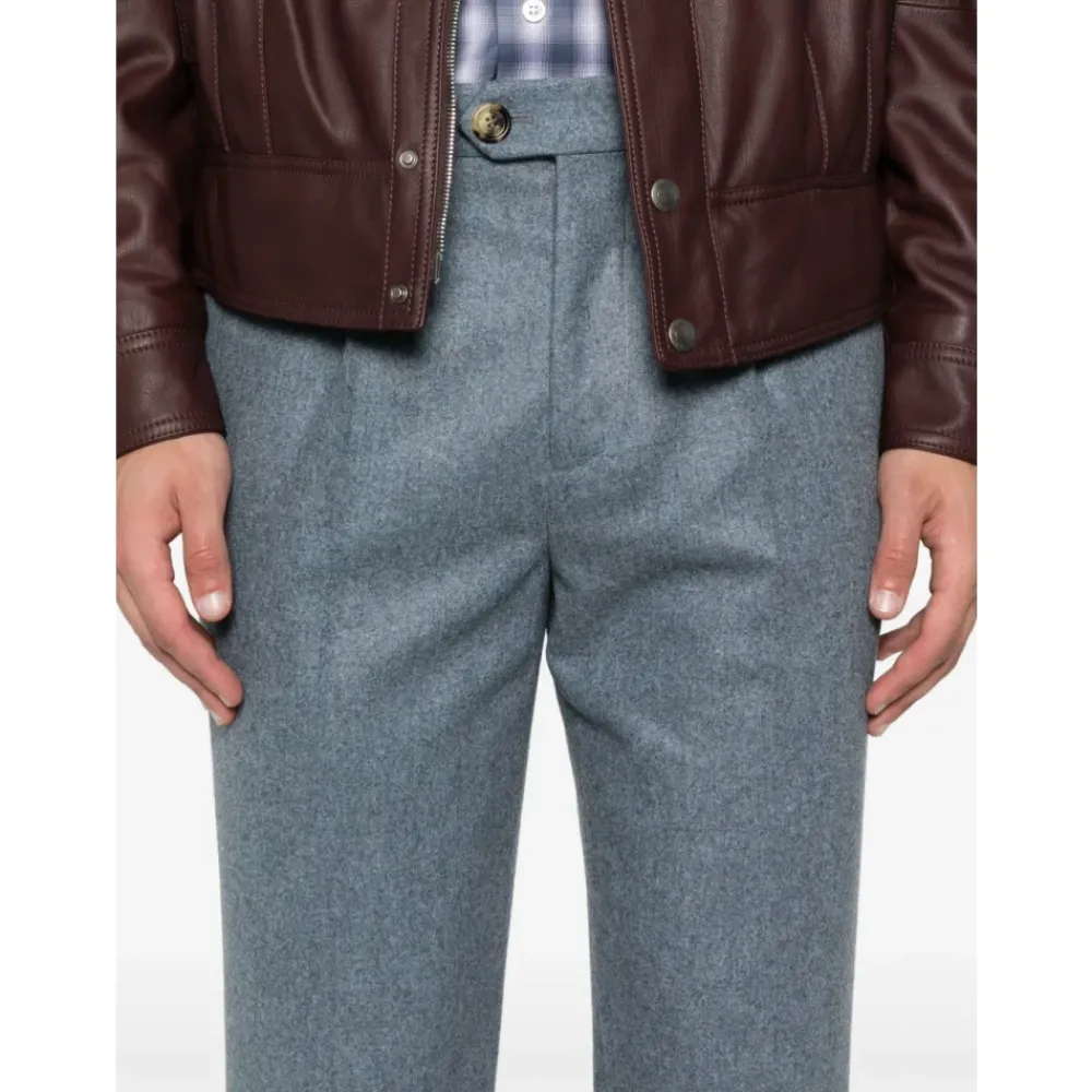 De Brunello Cucinelli Virgin Wool Trousers with Pleats combineren verfijnde tailoring en een gemêleerde afwerking voor zowel smart-casual als formele looks. De rechte snit en plooien aan de voorkant creëren een gestructureerd silhouet, geschikt voor kantoor of geklede gelegenheden. Belangrijkste kenmerken: Blauw | Azul | Wol | Gemêleerd effect | Rechte snit | Plooien aan de voorkant | Afmetingen & pasvorm: Rechte snit | Samenstelling & verzorging: 100% wol | Uitsluitend chemische reiniging