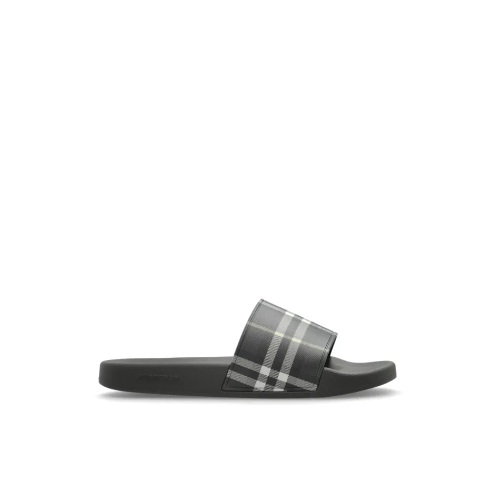 De Burberry Check Slides combineren de kenmerkende check-band van het merk met een voorgevormd rubberen voetbed voor comfortabel dagelijks gebruik. Het klassieke slide-silhouet benadrukt het gedrukte check-detail voor een herkenbare afwerking. Belangrijkste kenmerken: Dik groen | Polyurethaan | rubberconstructie | Voorgevormde binnenzool voor ondersteuning | Burberry-logo in reliëf op de zool | Kenmerkende Burberry Check-print op de band | Klassiek slide-silhouet | Gekartelde zool met verzonken logo | Brede voorgevormde band | Afmetingen & pasvorm: Zoolhoogte: 3 cm | Samenstelling & verzorging: Bovenkant: 100% polyurethaan | Zool: 60% polyurethaan, 40% thermoplastisch polyurethaan