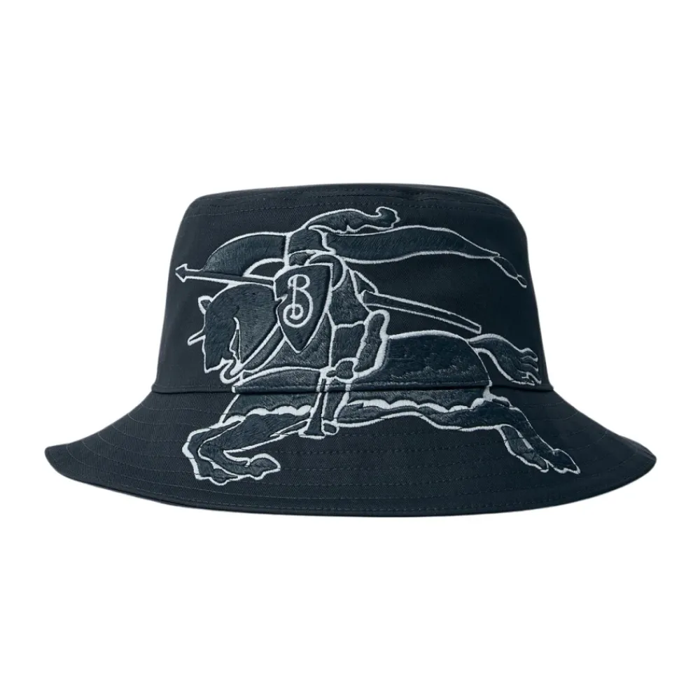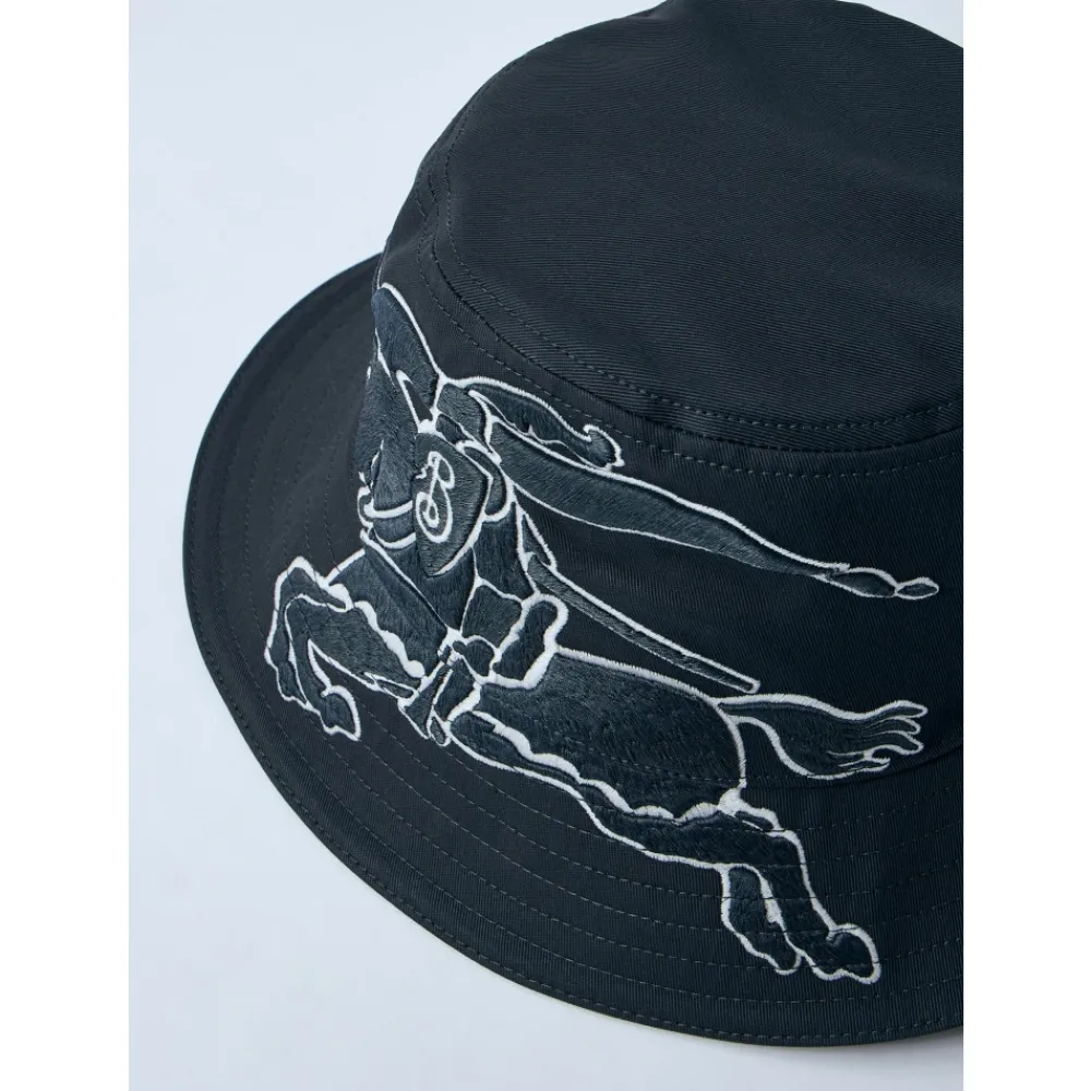 Upgrade je stijl met deze Burberry bucket hoed met logo motief van katoenen keperstof. Met een platte kroon, verlaagde rand en logo motief aan de voorkant, is deze hoed perfect voor de moderne man.