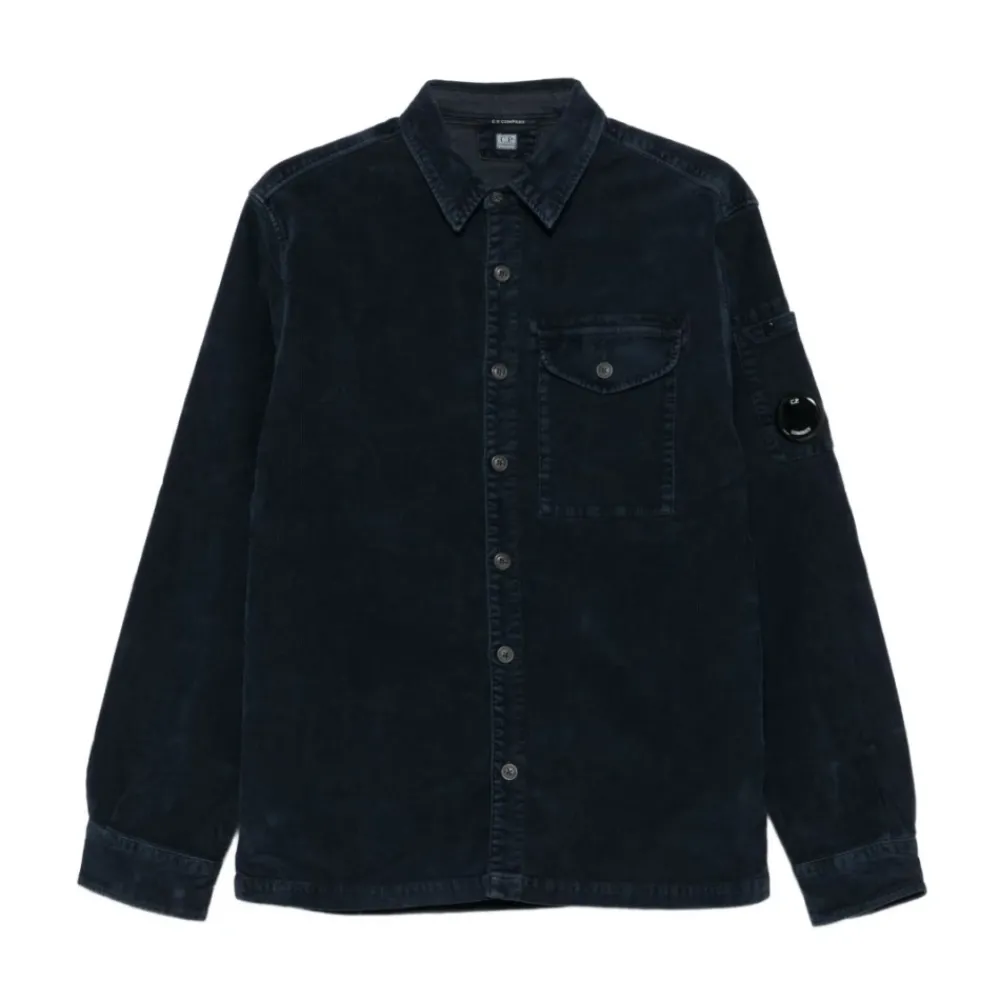 Upgrade je casual stijl met deze donkerblauwe corduroy casual shirt van C.P. Company. Voorzien van knoopsluiting, borstzak en lange mouwen. Vergeet niet om eventuele afneembare accessoires te verwijderen voor het wassen.