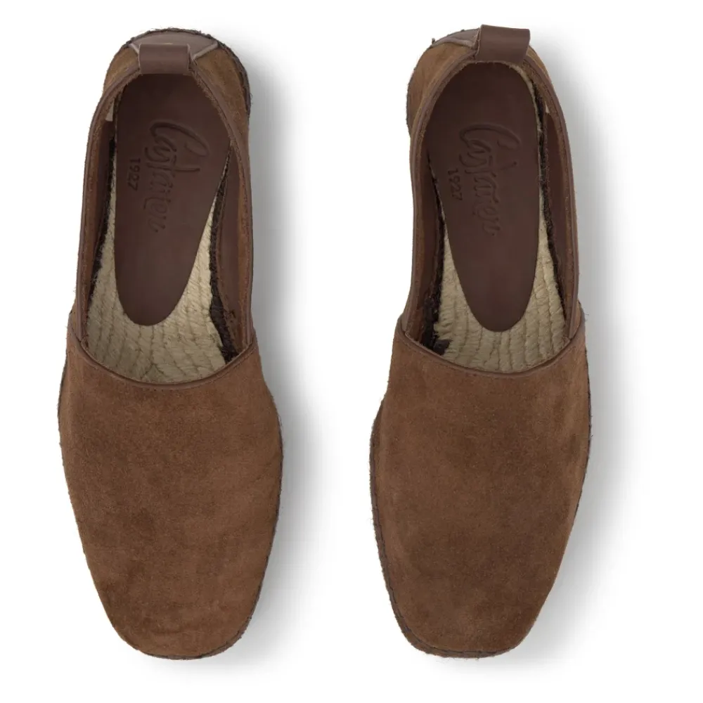 Piero campingstijl espadrille van splitleer en getinte jute zool.