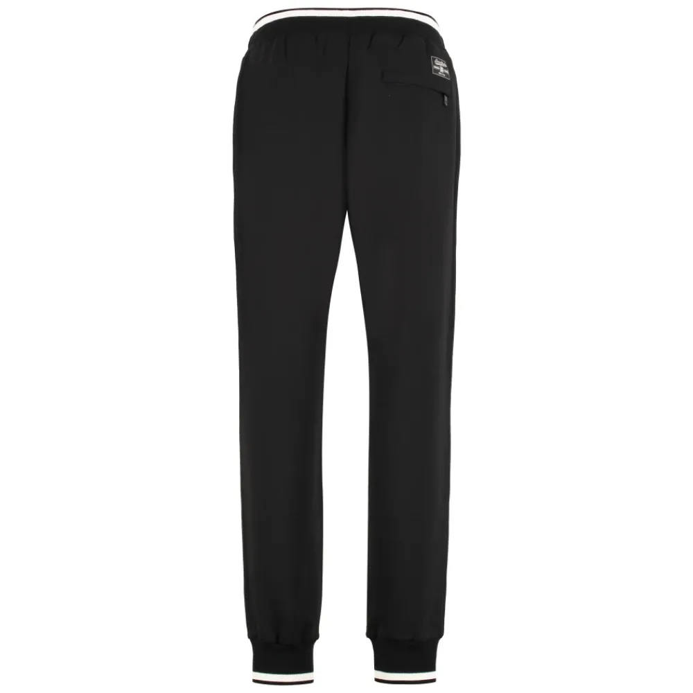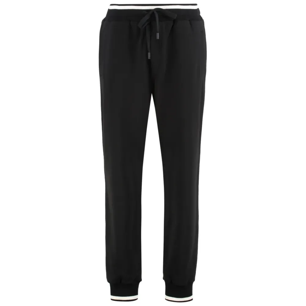 Dolce & Gabbana Track Pants van katoen combineren een sportief silhouet met praktische zakken en geribbelde boorden voor dagelijks comfort en bewegingsvrijheid. Belangrijkste kenmerken: Zwart | Katoen | Stretch | Ademend | Elastische tailleband met verstelbaar trekkoord | Twee zijzakken | Klein achterzakje met rits | Geribbelde boorden | Sportief silhouet | Samenstelling & verzorging: 96% Katoen | 4% Elastaan | Raadpleeg de instructies van de fabrikant