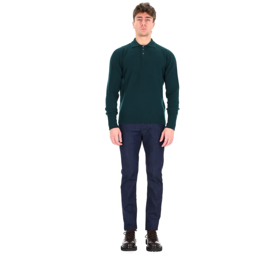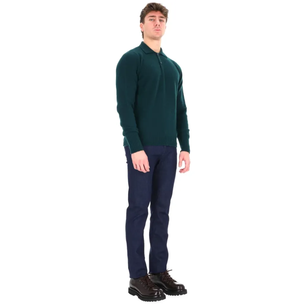 De Drumohr Polo is een wollen knit met een polo-achtige kraag en knopen van parelmoer, ontworpen om veelzijdig in laagjes te dragen of op zichzelf. Belangrijkste kenmerken: Groen | Wol | Knoopsluiting met drie knopen | Parelmoer knopen | Geribbelde zoom en manchetten | Polo kraag | Lange mouwen | Rechte zoom | Afmetingen & pasvorm: Regular fit | Model draagt maat 48 | Samenstelling & verzorging: 100% wol