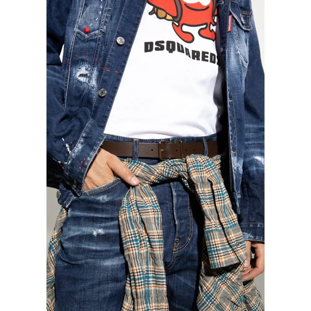 Dsquared2 Leren Riem is een strak accessoire dat wordt gekenmerkt door een goudkleurige metalen gesp. Het slanke profiel maakt hem geschikt voor het verfijnen van zowel casual als geklede outfits. Belangrijkste kenmerken: Bruin | Leer | Goudkleurige metalen gesp | Afmetingen & pasvorm: Breedte 3 cm | Samenstelling & verzorging: Leer