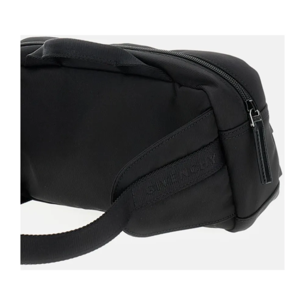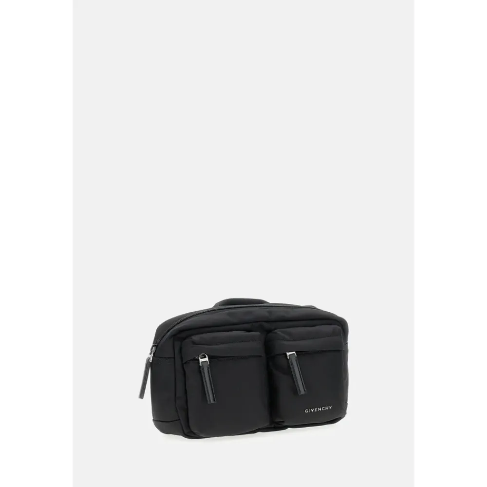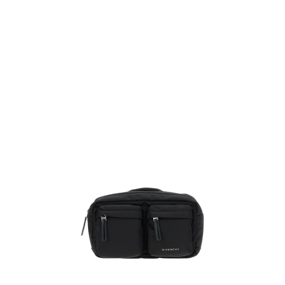 De Givenchy Essential U Belt Bag is een compacte nylon crossbody, ontworpen voor dagelijks gebruik, met een handvat aan de bovenkant en een verstelbare riem voor veelzijdig dragen. Belangrijkste kenmerken: Zwart | Polyamide | Verstelbare webbing riem voor crossbody gebruik | Handvat aan de bovenkant | Ritssluiting | Eén hoofdvak met ritssluiting | Twee voorzakken met ritssluiting | Metalen logo aan de voorkant | Zilverkleurige metalen hardware | Leren ritstrekker | Afmetingen & pasvorm: 27,9 cm x 15,9 cm x 8 cm | Samenstelling & onderhoud: 100% polyamide | Secundair materiaal: 100% kalfsleer | Bewaar in de originele verpakking op een droge plaats. Vermijd contact met water, parfum, cosmetica en langdurige blootstelling aan hitte of direct licht. Reinig met een zachte, droge doek.