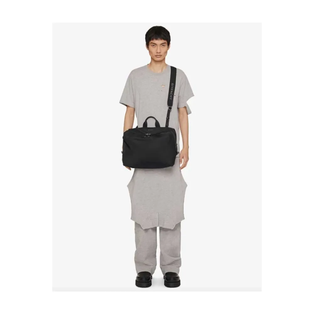 Maak kennis met de Givenchy Pandora Tas, een strakke en stijlvolle laptoptas ontworpen voor moderne behoeften. Het ruime interieur en de constructie maken hem ideaal om je laptop en benodigdheden in stijl mee te nemen. Belangrijkste kenmerken: Zwart | Nylon | Verstelbare schouderriem van webbing | Metalen ritssluiting | 4G rits | Brede opening | Samenstelling en onderhoud: Nylon