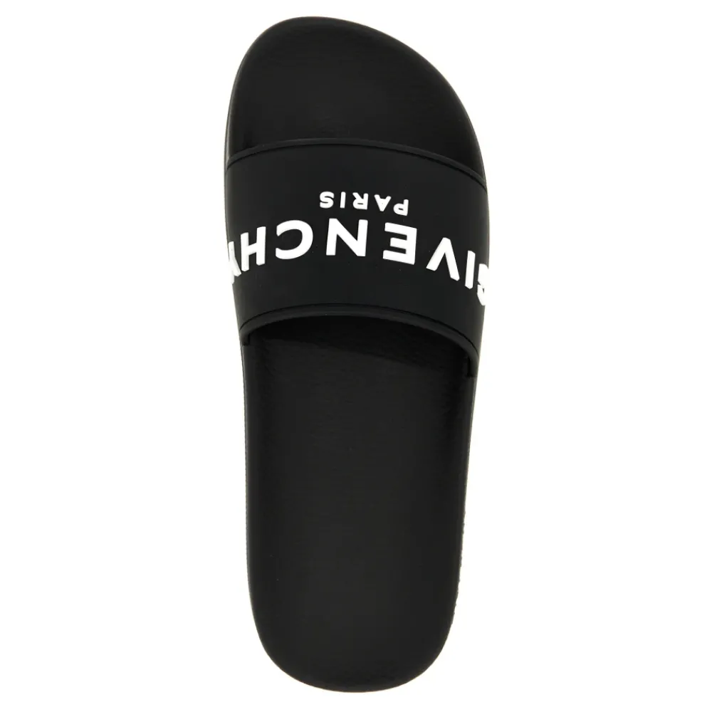 De Givenchy Plage Rubber Slide van Givenchy biedt een minimalistisch slip-on ontwerp met een contrasterend logo, ideaal voor bij het zwembad en dagelijks gebruik. Belangrijkste kenmerken: Zwart | Wit | Polyurethaan | Slip-on constructie | Voorgevormd voetbed | Contrasterend logo op de band | Enkele brede band | Verhoogde/reliëf branding | Samenstelling & onderhoud: 100% polyurethaan | Afnemen met een vochtige doek. Vermijd langdurige blootstelling aan hitte, licht of chemische producten. Bewaar op een koele, droge plaats.