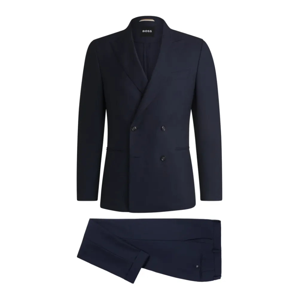 Upgrade je stijl met het Hugo Boss Huge herenpak in het blauw. Het dubbelrijige ontwerp voegt een elegant en verfijnd tintje toe, perfect voor de moderne en verfijnde man. Gemaakt van 100% wol, zorgt dit pak voor een onberispelijke look voor elke gelegenheid.