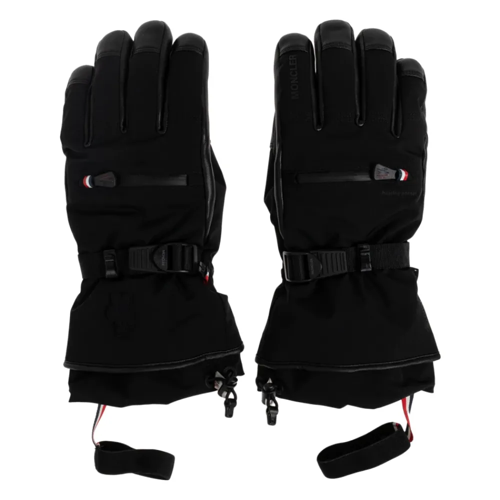 Moncler Grenoble presenteert de Gewatteerde Handschoenen in samenwerking met Reusch, waarbij alpine-klare bescherming wordt gecombineerd met premium materialen. Verlengde manchetten en een zak met ritssluiting voor een verwarmingskussen zorgen voor weerbestendigheid en gerichte warmte op de piste. Belangrijkste kenmerken: Zwart | Nylon en leer | Gewatteerde isolatie | Waterdicht technisch buitenmateriaal | Verbeterde grip door leren handpalm | Verlengde lange manchetten voor bescherming tegen sneeuw en wind | Ergonomisch gevormde vingers voor een stevige grip | Zak met ritssluiting voor verwarmingskussen | Verstelbare gesp-/polsband | Leren handpalm- en vingertopversteviging | Moncler-logo in reliëf | Prominente MONCLER-inscriptie | Subtiele driekleurige accenten bij de ritsen van de verwarmingszak | Lang silhouet van de manchet | Samenstelling & verzorging: Basismateriaal: 87% polyamide, 13% elastaan | Vulling: 100% polyester | Voering: 65% polyester, 35% katoen | Leer: lamsleer | Niet wassen. Niet bleken. Niet in de droogtrommel. Niet strijken. Niet chemisch reinigen. Plat drogen in de schaduw.