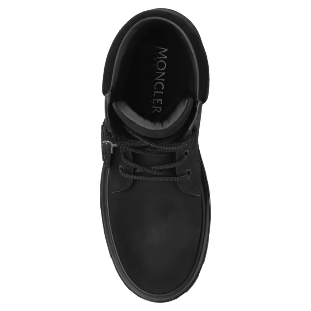 De Moncler Peak City enkellaarsjes combineren een minimalistisch profiel met veters met een diepgegroefde rubberen zool voor stabiele slijtage in alle seizoenen. Het ontwerp combineert nubuck en suède bovenwerk met een zacht gevoerde kraag voor dagelijks gebruik in de stad en buitenshuis. Belangrijkste kenmerken: Zwart | Nubuck en suède | Diepgegroefde rubber/elastodieen zool voor grip | , stabiele zoolconstructie | EVA-middenzool voor demping | Vetersluiting | Zachte, gewatteerde textielen kraag voor comfort | Inlegzool met merknaam | Hoog silhouet tot de enkels | Eénkleurige, minimale stiksels | Reliëf MONCLER-opschrift op de tong | Verhoogd designerembleem op sleutelhanger | Ronde neus | Afmetingen en pasvorm: Zoolhoogte: 4 cm | Zoolhoogte op het hoogste punt: 5 cm | Schachthoogte: 13,5 cm | Samenstelling en verzorging: Bovenkant: Kalfsleer (nubuck en suède) | Voering: Polyamide (mesh) en leer | Middenzool: EVA | Zool: Elastodieen / rubber | Niet wassen. Niet bleken. Niet in de droogtrommel. Niet strijken. Niet chemisch reinigen. Zorgvuldig opbergen en periodiek laten ademen.