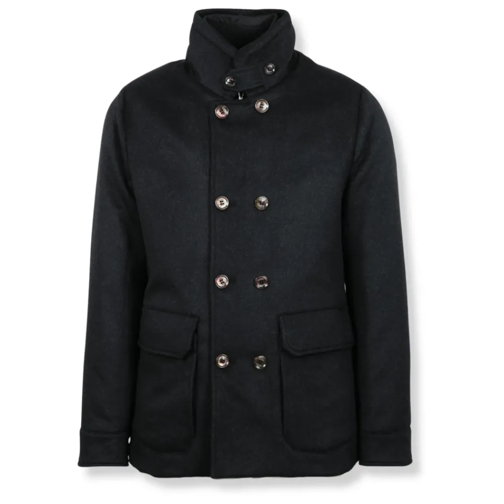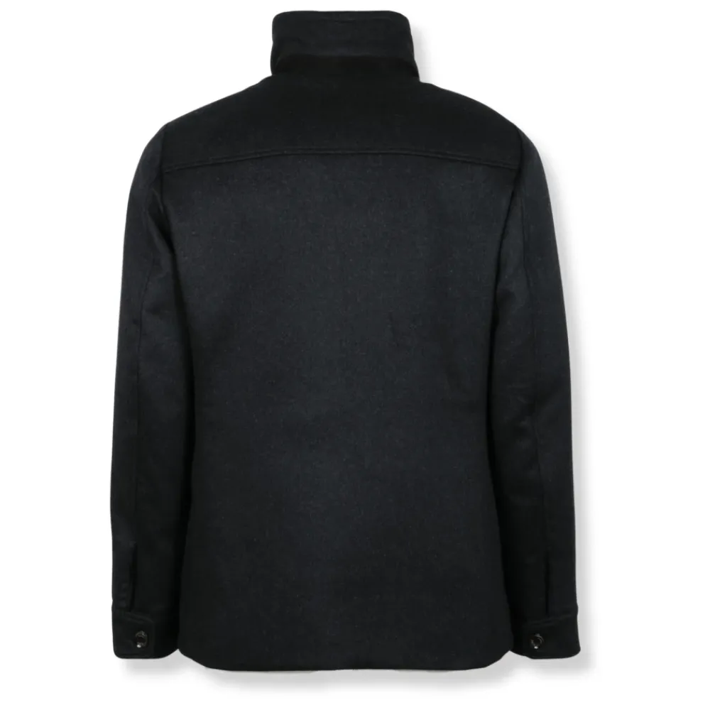 Moorer Giacca sahariana combineert een double-breasted sahariana silhouet met interlock stretch materiaal voor gestructureerd comfort. De jas heeft een rechte kraag met suède afwerking en praktische opgestikte zakken voor dagelijks gebruik. Belangrijkste kenmerken: Grijs | Donkergrijs | Interlock stretch | Manchetten met knopen | Opgestikte zakken met klep | Sluiting met knopen aan de voorkant | Double-breasted | Rechte kraag met suède afwerking | Sahariana silhouet | Samenstelling & onderhoud: Interlock stretch | Suède