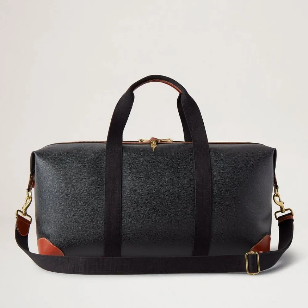 Mulberry Medium Clipper Black & Cognac Weekend Bag is de perfecte keuze voor een stijlvolle en praktische reisgenoot. Gemaakt van Printed Eco Scotchgrain & Leather, kan deze middelgrote tas met de hand, over de schouder of over het lichaam gedragen worden. Het heeft leren details, twee canvas handvatten met leren accenten, een afneembare en verstelbare canvas schouderriem, metalen voeten aan de onderkant en een binnenzak met rits.