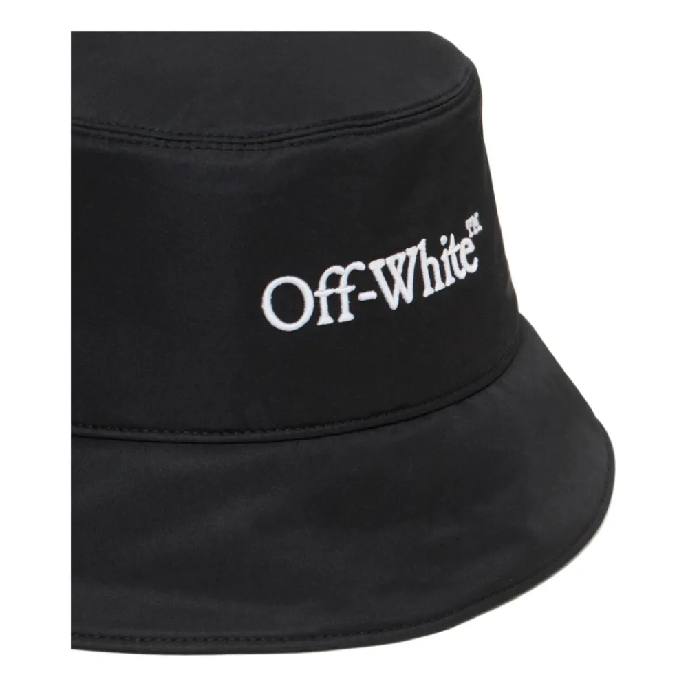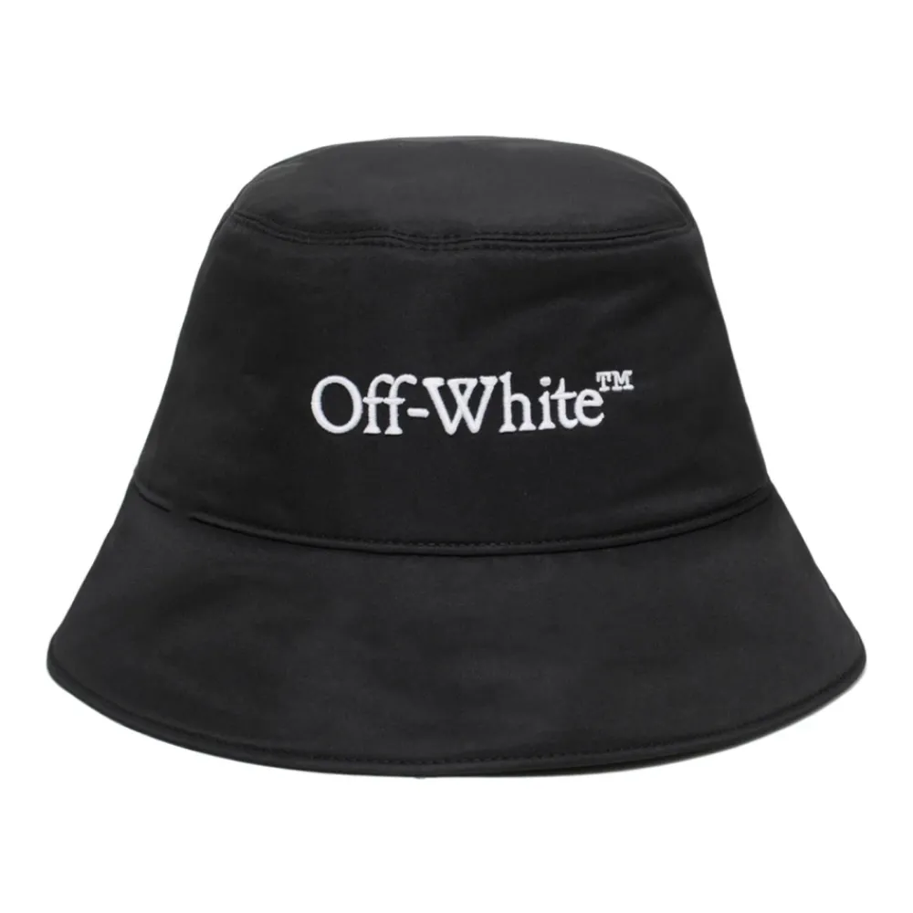 De Off-White Bookish Bucket Hat combineert een platte kroon met een brede, afhangende rand voor een moderne bedekking. De zwarte instaphoed is voorzien van een geborduurd logo aan de voorkant en een intern logo-label voor merkdetails. Belangrijkste kenmerken: Zwart | Off white | Instapmodel | Intern logo-label | Platte kroon | Brede, afhangende rand | Geborduurd logo aan de voorkant