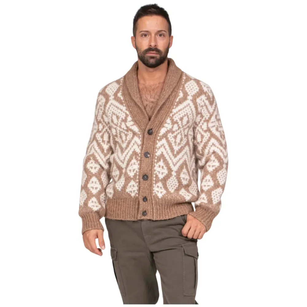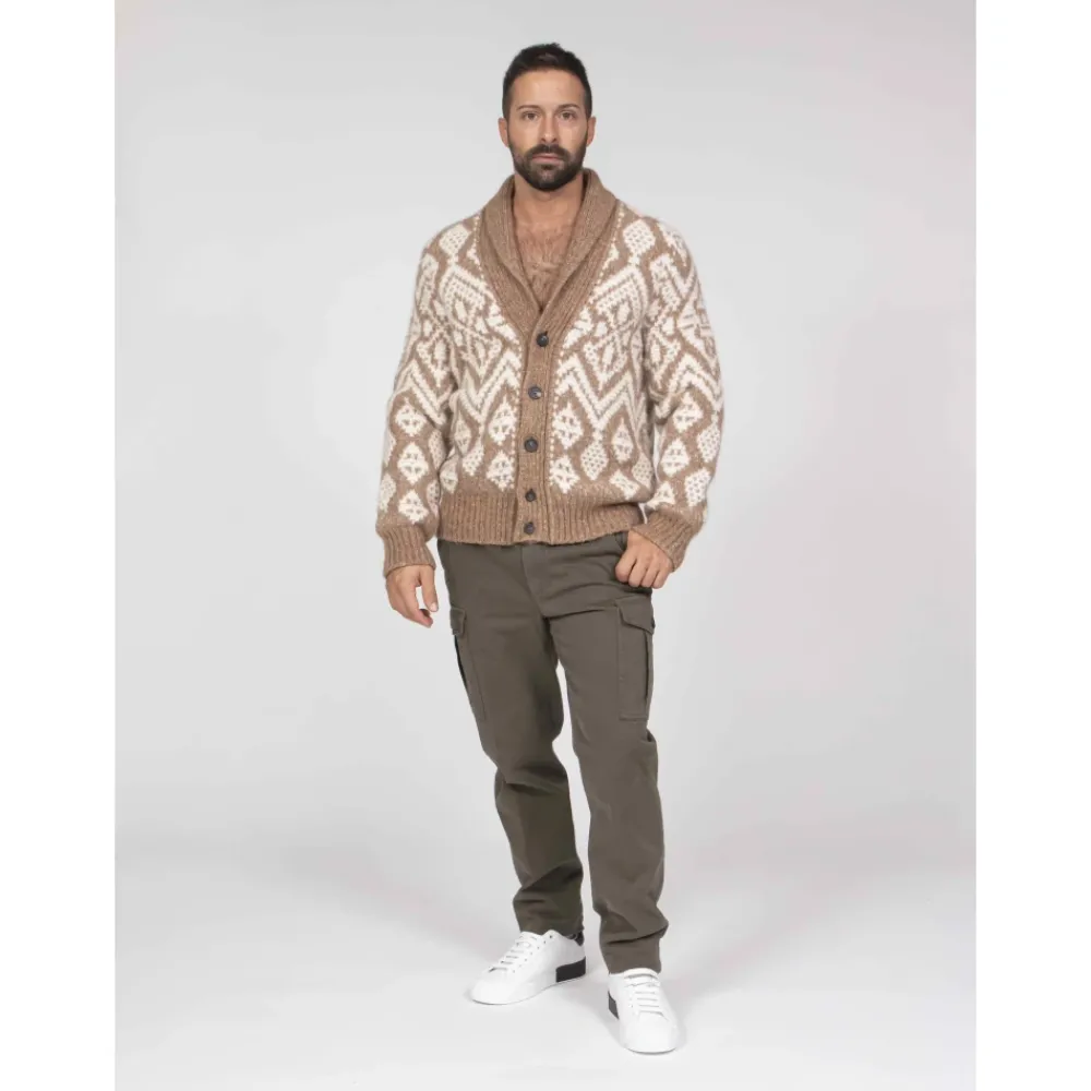 De Peserico Soft Mouliné Yarn Cardigan combineert een lichtgewicht, gemêleerd breisel met een Noorse jacquard voor warme, stijlvolle laagjes. Afgewerkt met een sjaalkraag en merkhoornen knopen voor een verfijnde, op de bergen geïnspireerde look. Belangrijkste kenmerken: Beige | Alpaca | Zacht handgevoel | Lichtgewicht warmte | Gemêleerde textuur | Knoopsluiting aan de voorkant | Sjaalkraag | Noors jacquardpatroon | Lange ingezette mouwen | Geribde manchetten en zoom | Merkhoornen knopen | Afmetingen & pasvorm: Regular fit | Samenstelling & onderhoud: 50% alpaca | 22% katoen | 19% polyamide | 9% wol