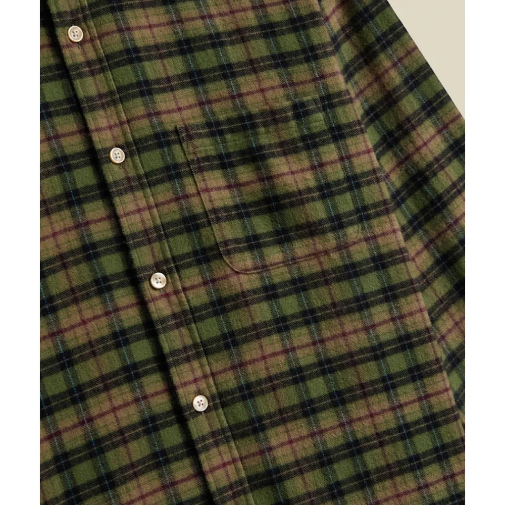 Upgrade je garderobe met het Parque Check Shirt van het Portugese merk Portuguese Flannel. Gemaakt van 100% katoenen flanel, combineert dit shirt traditioneel vakmanschap met modern comfort. De klassieke Kent-kraag en regular fit bieden een tijdloze silhouet, terwijl het gedurfde groen, blauw en rood geruite patroon een verfijnde uitstraling geeft. Een veelzijdig kledingstuk geschikt voor zowel casual als nette styling.