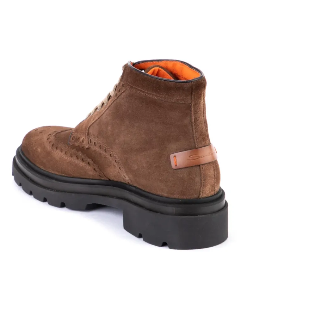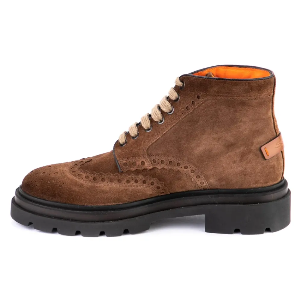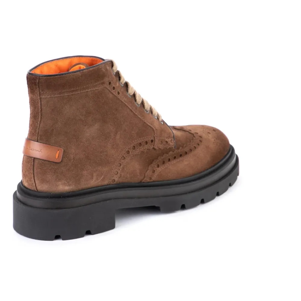 Stap vol vertrouwen naar buiten met deze Santoni suède vetersluiting enkellaarsjes, ontworpen voor duurzaamheid en stijl met een antislip rubberen zool. Belangrijkste kenmerken: Bruin | Suède | Antislip zool | Vetersluiting | Enkelhoogte | Afmetingen en pasvorm: Normale pasvorm | Samenstelling en onderhoud: Suède | Rubber | Reinigen met een suèdeborstel, vermijd blootstelling aan water.