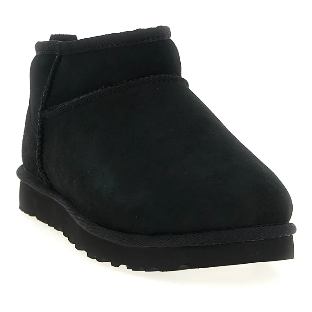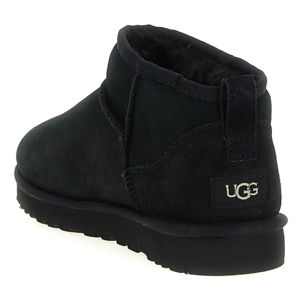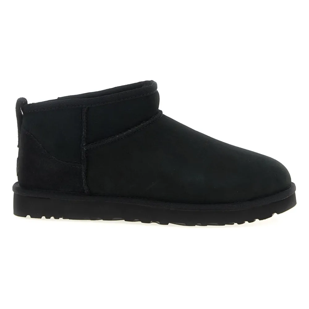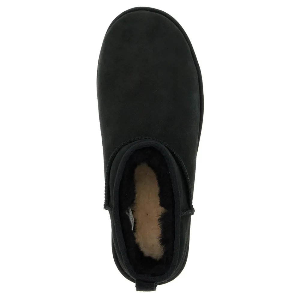 De UGG Classic Ultra Mini enkellaarsjes combineren het kenmerkende comfort van UGG-schapenvacht met een lage, gemakkelijk te dragen schacht en waterafstotend suède voor dagelijks gebruik bij koud weer. Belangrijkste kenmerken: Zwart | Suède | Waterafstotende behandeling | Treadlite by UGG™ zool | Slip-on / aantrek design | Voering en binnenzool van schapenvacht | Omgekeerd suède bovenwerk | Overlock stiksels | Ronde neus | Treklus aan de achterkant | Samenstelling & verzorging: Suède bovenwerk | Voering van schapenvacht | Binnenzool van schapenvacht | Treadlite rubberen zool