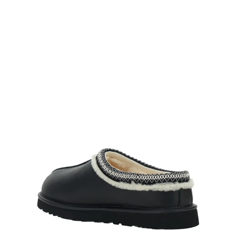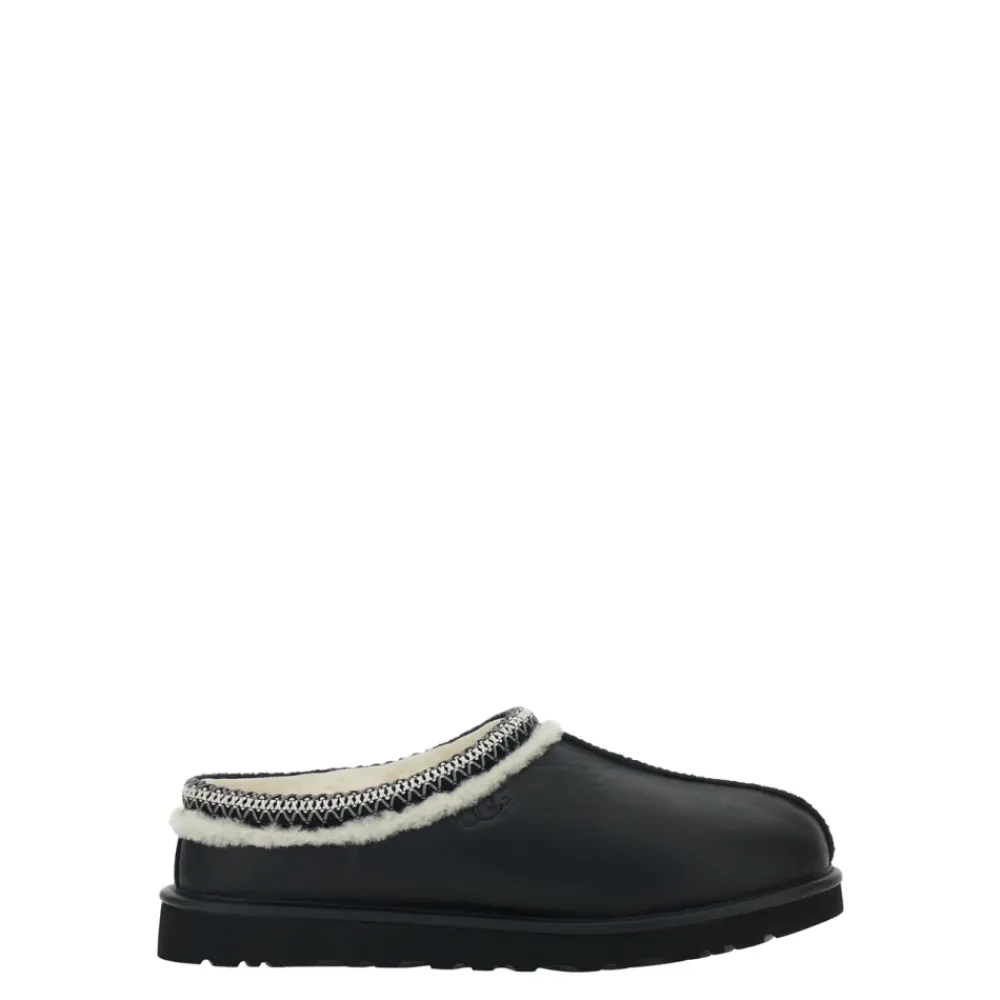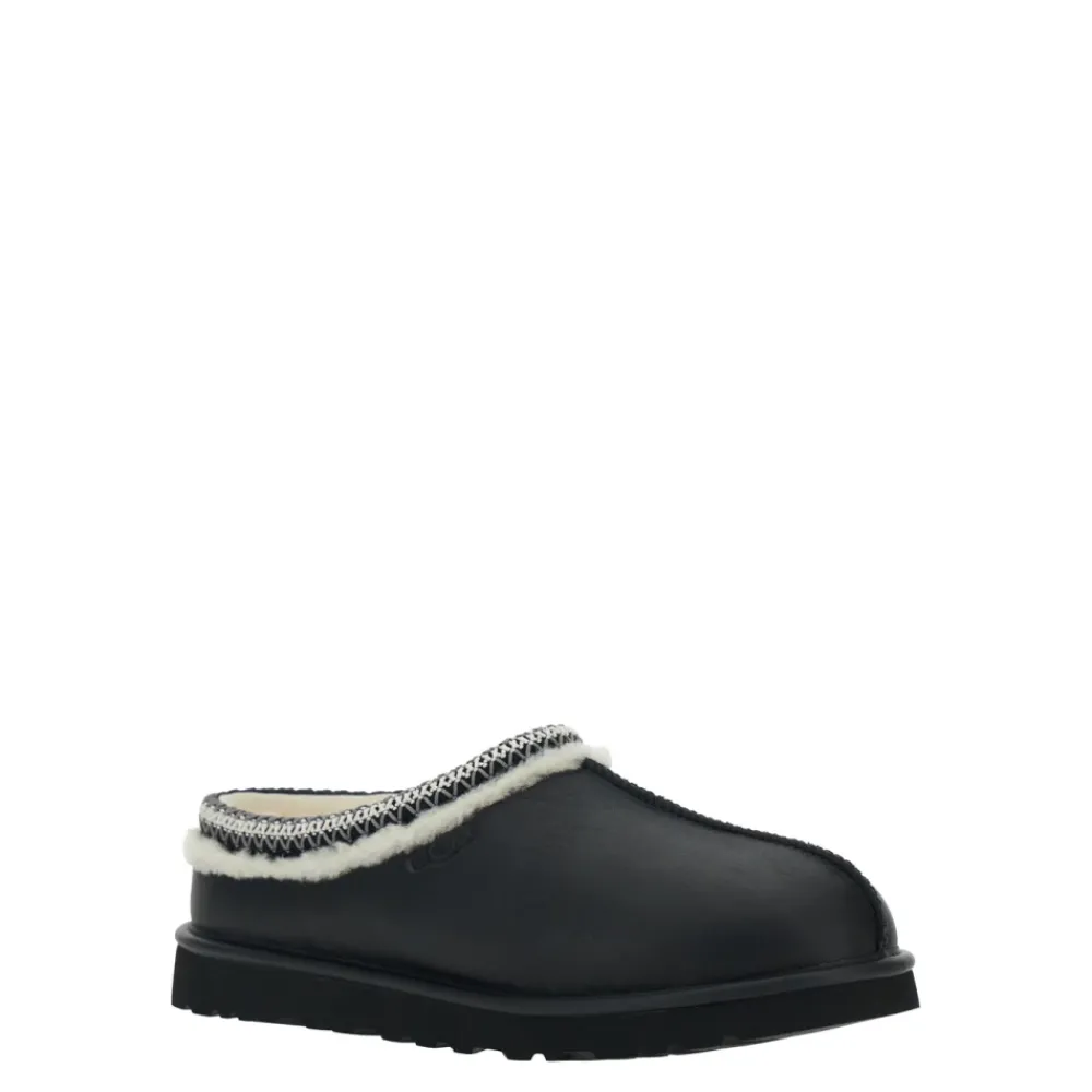 Upgrade je loungewear met deze Tasman zwarte leren muilezels voor mannen van UGG, met een reliëflogo. Perfect voor stijlvol comfort thuis..UGG`s zitten in het begin soms strak, maar de voering kan uitrekken naarmate u ze vaker draagt. We raden u aan uw gebruikelijke maat te kiezen.