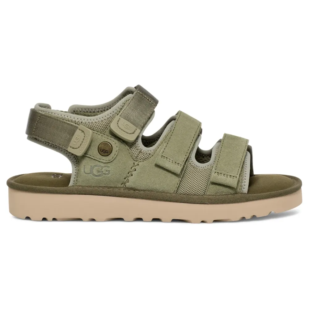 De UGG Goldencoast Multistrap Sandaal combineert een silhouet met meerdere bandjes met verstelbare klittenbandsluitingen en een gedempte zool voor een casual look bij warm weer. Belangrijkste kenmerken: Groen | Genuanceerde klaver | Suède en textiel | Gedempte schuimrubberen voetbed | Lichtgewicht EVA-loopzool | Verstelbare klittenbandsluitingen | Makkelijk aan en uit te trekken | Silhouet met meerdere bandjes | Klittenbandsluitingen | TPU-banduiteinde met merklogo | Samenstelling onderhoud: Bovenwerk: suède en textiel | Voering: textiel (microvezel) | Binnenzool: schuim/microvezel sockliner | Buitenzool: EVA